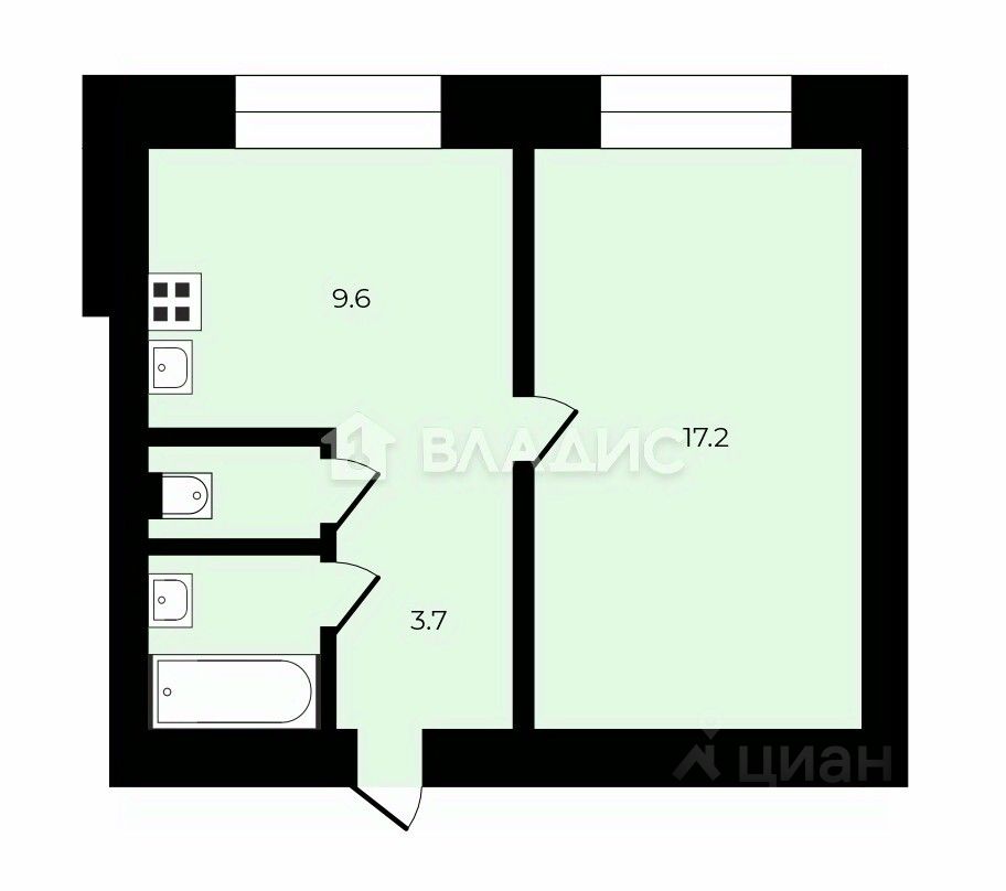 Основные характеристики: Наша квартира расположена в теплом кирпичном доме 1986 г. постройки, на 4 этаже. Общая площадь: 36,4м2 Комната 17.2м2 Кухня 9.6м2