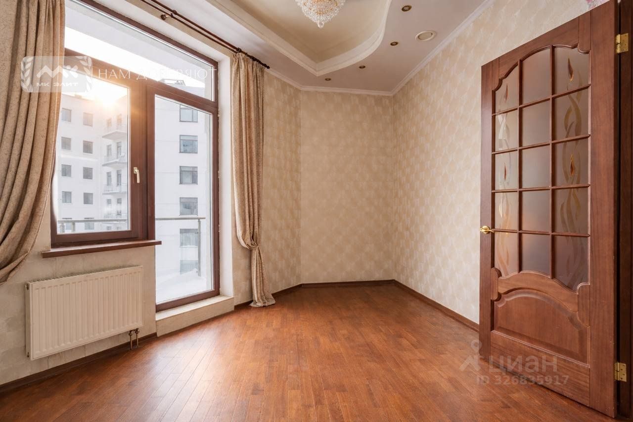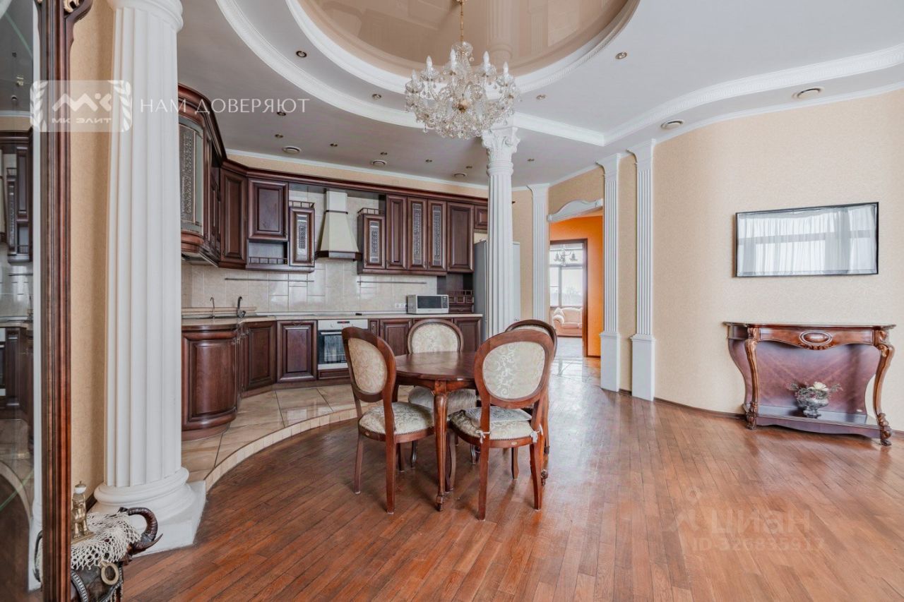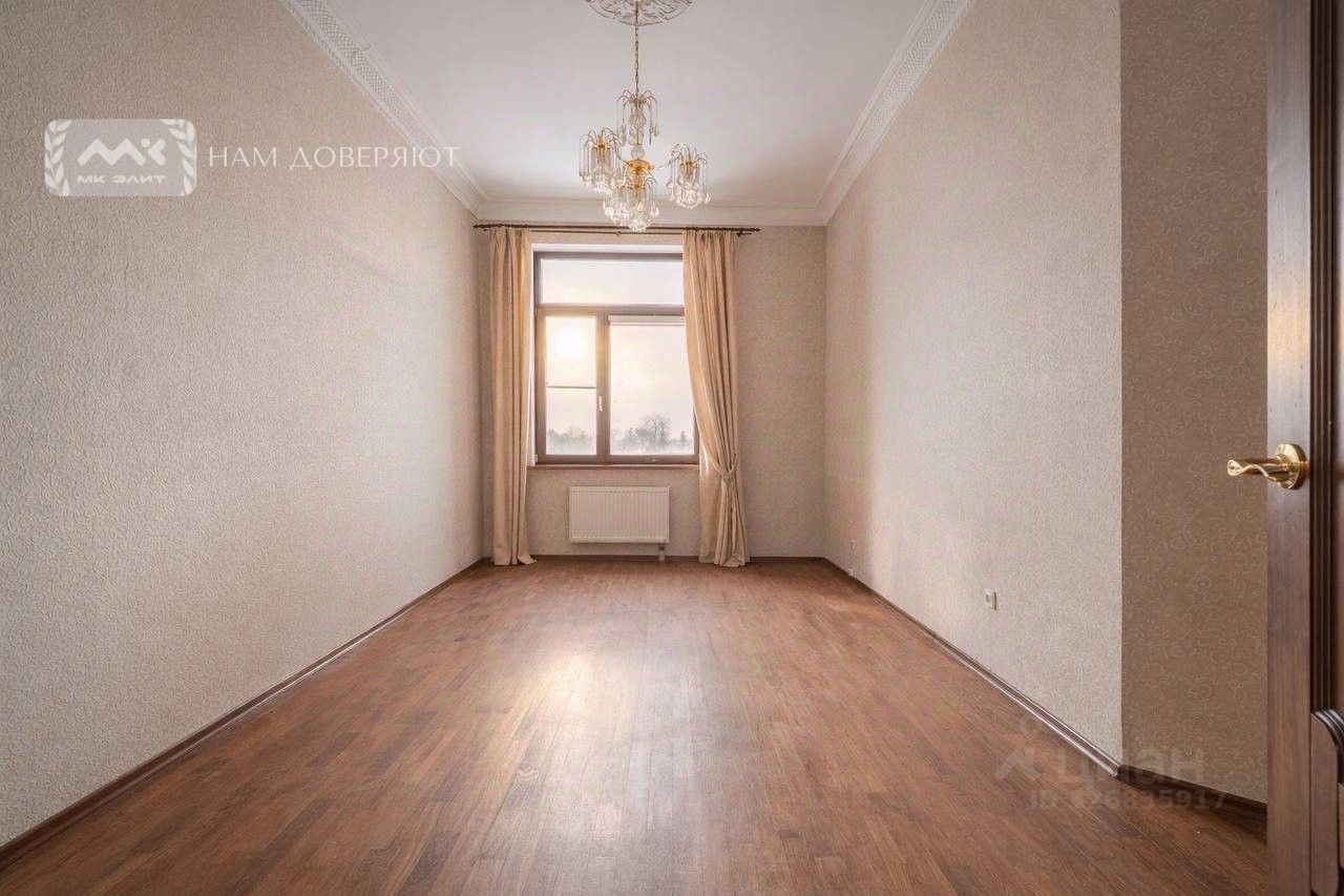 Продуманная двусторонняя планировка включает: просторную гостиную с кухнейстоловой площадью 41,4 кв.м, 2 спальни ( 25,4+18,8 кв.м) с видом на парк, спальню 14 кв.м. (кабинет) с выходом на открытый балкон 3,9 кв.м., с видом во двор, 3 санузла, 2 гардеробные, комфортный 5 этаж, высота потолков в квартире 3,4 м, деревянные стеклопакеты высотой 2,3 м,