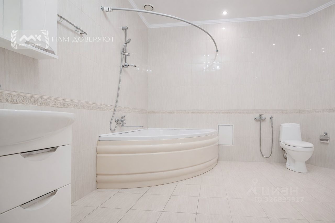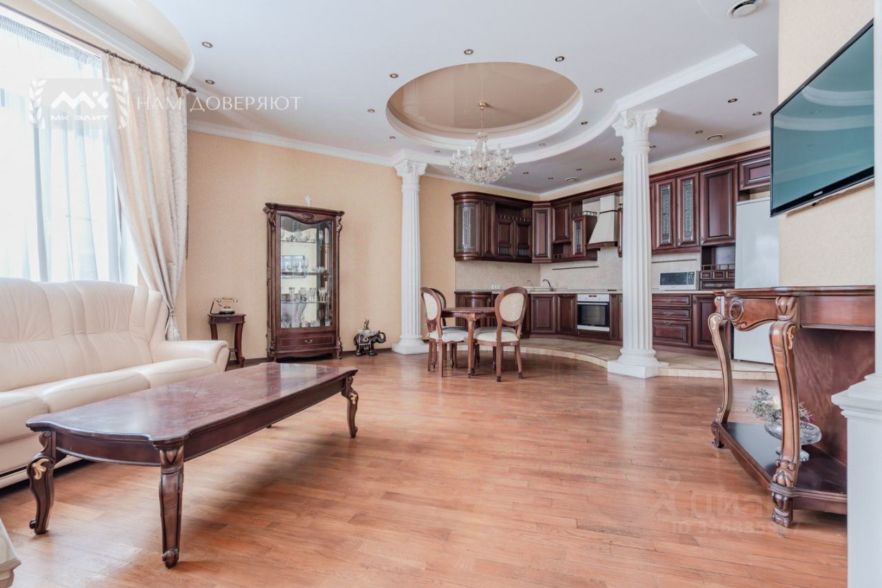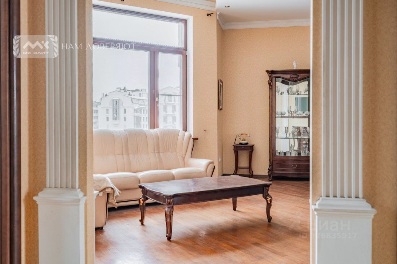 Продуманная двусторонняя планировка включает: просторную гостиную с кухнейстоловой площадью 41,4 кв.м, 2 спальни ( 25,4+18,8 кв.м) с видом на парк, спальню 14 кв.м. (кабинет) с выходом на открытый балкон 3,9 кв.м., с видом во двор, 3 санузла, 2 гардеробные, комфортный 5 этаж, высота потолков в квартире 3,4 м, деревянные стеклопакеты высотой 2,3 м,