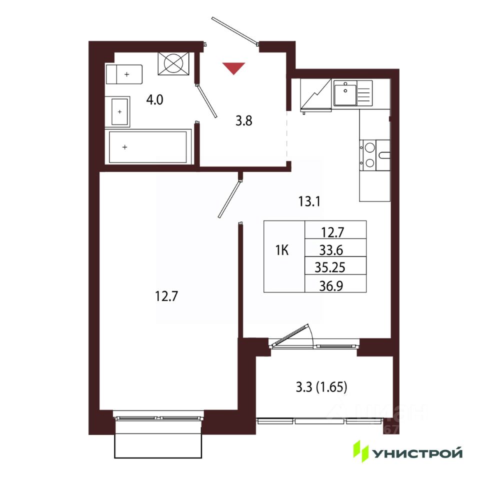Общая площадь35,25 м2