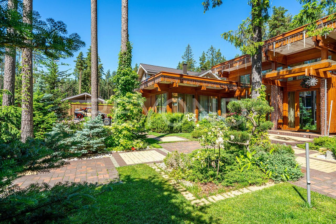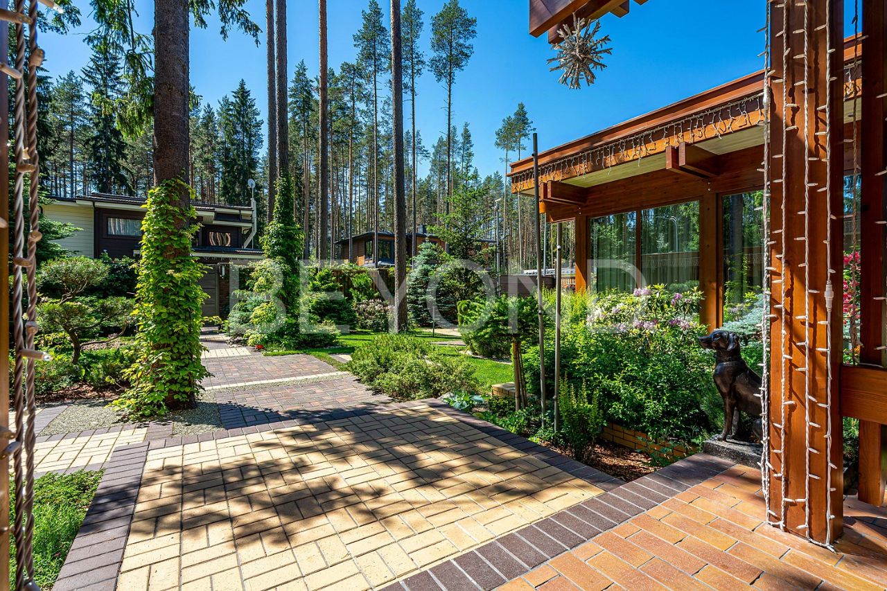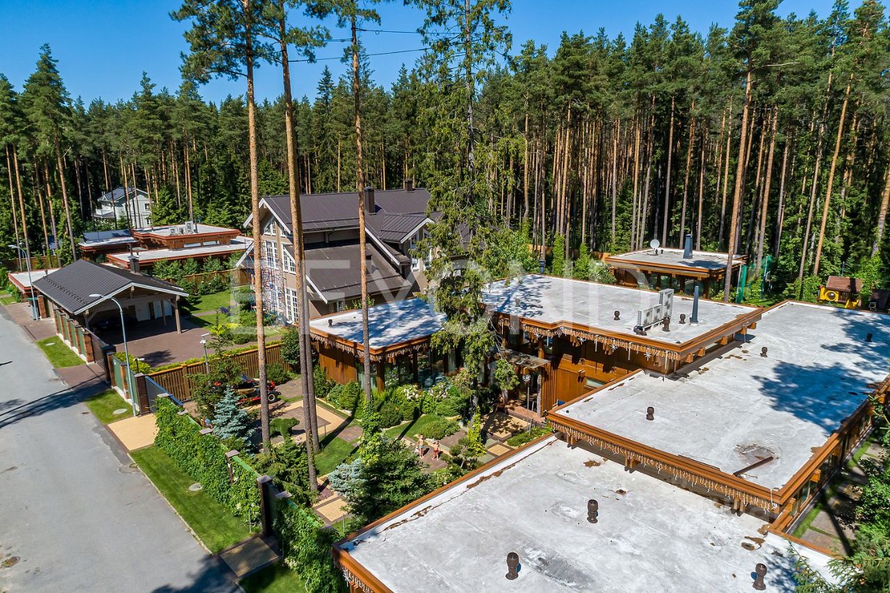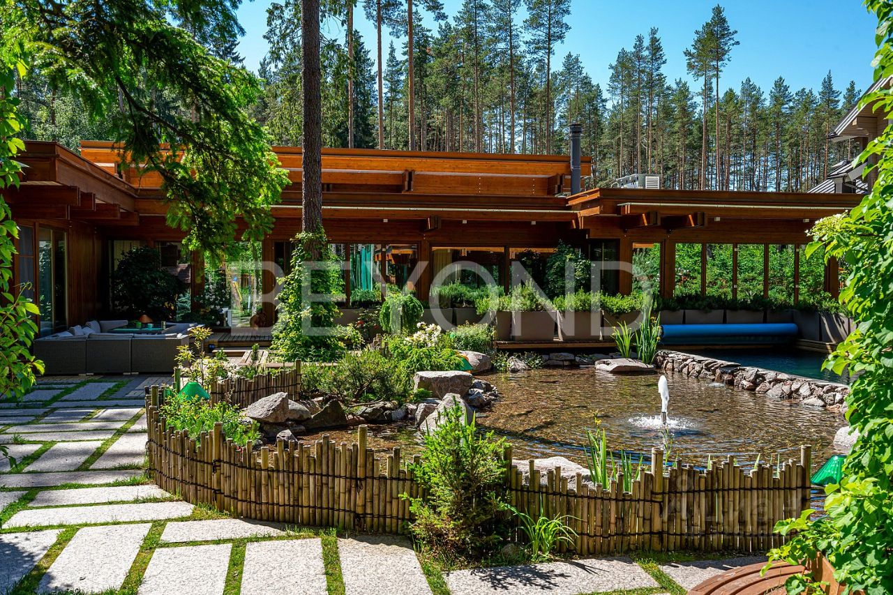 Уникальная загородная резиденция общей площадью 456 кв. м, расположена на закрытой территории, в премиальной и камерной локации г.Зеленогорск. Художественный участок 1847 кв.м с изобилием редких пород растений поражает своим ландшафтом и ухоженностью, граничит с сосновым лесом, что дает возможность увеличения площади. Архитектура дома создана по индивидуальному проекту известной итальянской студии ''Pagano'', где жилое пространство превращается в живописное. Основной дом разделен на несколько зон: Центральную часть занимают кухня из шпона вишни и столовая зона Longhi (Италия) с яркими стульями Rolf Benz (Германия). Парящая 3-х метровая хрустальная люстра Ipe Cavalli превратит любой ужин в роскошный праздник.