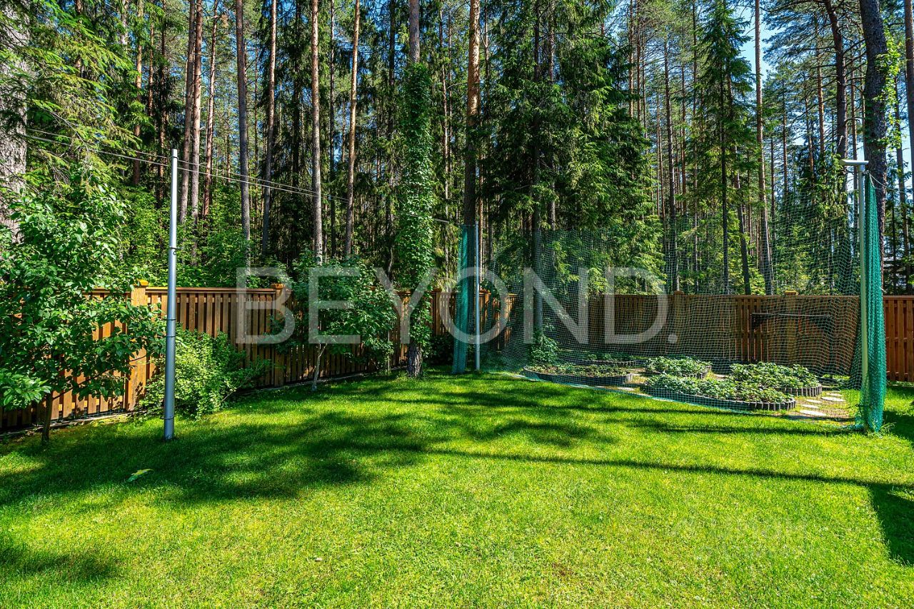 Уникальная загородная резиденция общей площадью 456 кв. м, расположена на закрытой территории, в премиальной и камерной локации г.Зеленогорск. Художественный участок 1847 кв.м с изобилием редких пород растений поражает своим ландшафтом и ухоженностью, граничит с сосновым лесом, что дает возможность увеличения площади. Архитектура дома создана по индивидуальному проекту известной итальянской студии ''Pagano'', где жилое пространство превращается в живописное. Основной дом разделен на несколько зон: Центральную часть занимают кухня из шпона вишни и столовая зона Longhi (Италия) с яркими стульями Rolf Benz (Германия). Парящая 3-х метровая хрустальная люстра Ipe Cavalli превратит любой ужин в роскошный праздник. Аудитория для работы или медитаций украшена стеной из живых растений с выходом на свежий воздух с видом на сосновый лес. Двусторонний камин Boley (Голландия) в зоне отдыха с кинотеатром и мягкой диванной группой VISIONNAIRE (Италия) c открывающейся панорамой во внутренний сад с бассейном и фонтаном. Внутренняя SPA-зона полностью укомплектована: мини-бассейн Jacuzzi (Италия), блок из Хамам и финской сауны с тропическим душем тоже Jacuzzi. Отдельной является спальный блок, состоящий из 4 спален: 2 мастер-спальни, 2 детские спальни и ванная. Дополнительными являются просторная комната постирочной с умной техникой для стирки Miele c сушильным шкафом, и котельной (котлы Viessmann). Технически дом продуман до мелочей и оснащен современными инженерными системами, представленными лучшим оборудованием в своем классе. Умный дом ABB, качественный щит на дифференциальных автоматах с системами грозозащиты и защиты от перепада напряжения. Система кондиционирования Daikin (Япония) в каждой спальне, весь дом обеспечивает свежим воздухом вентиляционная установка Rosenberg, работает не только как как приточно-вытяжная но и система охлаждения или нагрева. На участке напротив бассейна расположен банный комплекс с сауной : печь финская Tulikivi полностью из камня, зона отдыха с кухней и мебелью STRATO (Италия). Крытый паркинг на 3 автомобиля. Надежный конструктив дома состоит из СLS панелей, крепких как монолит, утепленных португальским пробковым дубом, что обеспечивает максимальное тепло в зимний период и спокойно переносит заморозки. Каждая деталь конструктива выкрашена немецким лаком в 4 слоя, благодаря чему виден благородный узор дерева и обеспечена долговечность дома. Большое количество световых сценариев для разных зон освещения задает настроение всего дома, особенно на новый год. Основательный подход к строительству дома и его наполнению удивит самого избирательного покупателя, который ищет готовый дом с прекрасным исполнением для своей семьи.