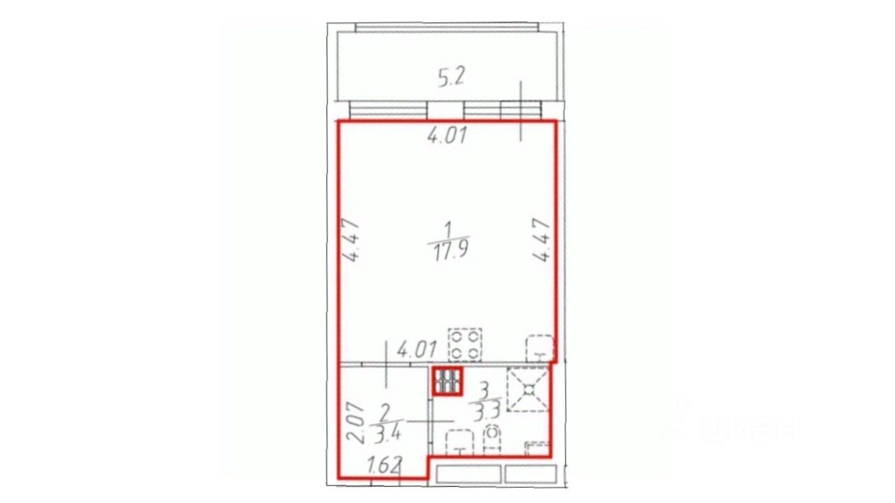 Балкон: просторный, 5,2 м