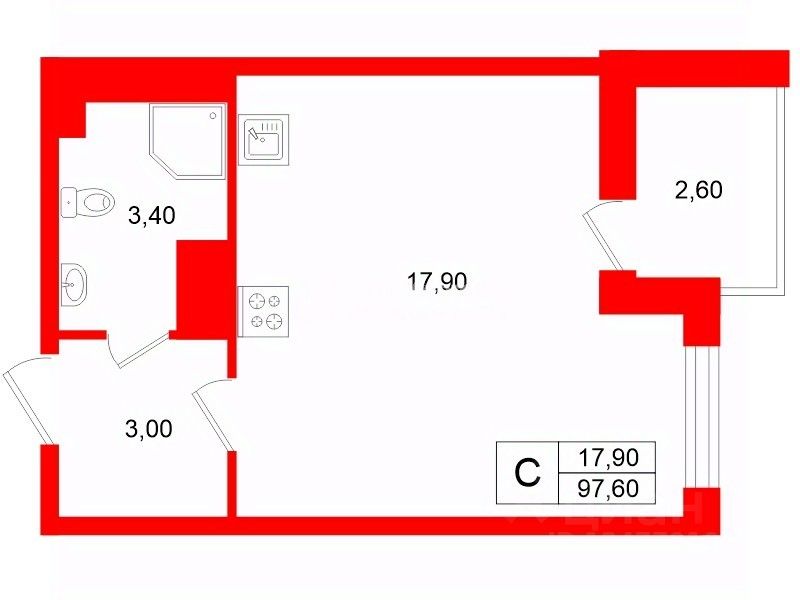 Квартира расположена на 4 этаже. Общая площадь без учета лоджии 24,3 кв.м. Жилая площадь 17,9 кв.м, квадратная форма. Совмещенный сан.узел, установлена душевая кабина. Вид из окон в тихий двор. Застекленная лоджия.