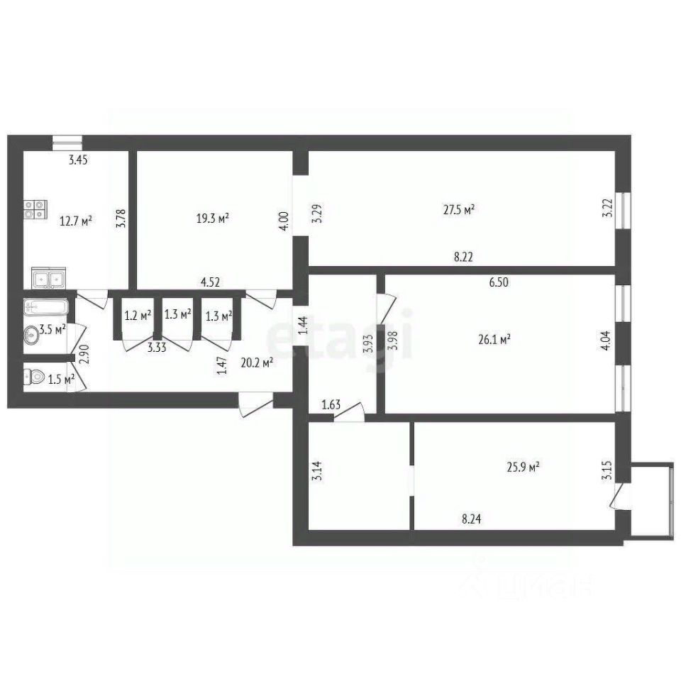 Планировка отличается надежными железобетонными перекрытиями 80% железобетон, 20% деревянные полы, что является редкостью для домов этого периода и обеспечивает дополнительную звукоизоляцию и долговечность.