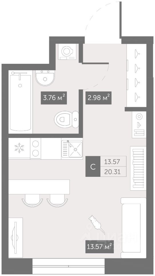 Цена со специальной скидкой в прямой продаже от застройщика — только в этом месяце. Апартамент-студия в комплексе класса бизнес-лайт Zoom Чёрная Речка на 5-м этаже. Общая площадь 20,31. Без отделки.