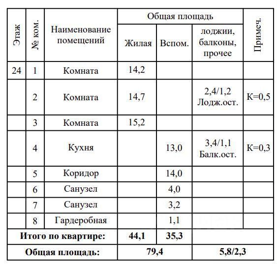 Квартира находится на 24 этаже. Это последний этаж, поэтому соседи сверху беспокоить не будут. Общая площадь составляет 79,4 м2, в нее не включены балкон(3,4м2) и лоджия(2,4). Сделан качественный ремонт, выполнены разводка электрики и сантехники. Планировка. В квартире три большие изолированные комнаты. Во всех комнатах есть ТВ и еthеrnеt-розетки. Кухня: Установлен гарнитур Икея со встроенными духовым шкафом, индукционной варочной панелью и большой посудомойкой. Так же установлены вытяжка и подсветка рабочей зоны. Под раковиной встроены измельчитель пищевых отходов и фильтр для питьевой воды. Коридор: Установлен большой шкаф-купе длинной 4 метра. Так же имеется кладовая с полками и местом для хранения велосипедов.