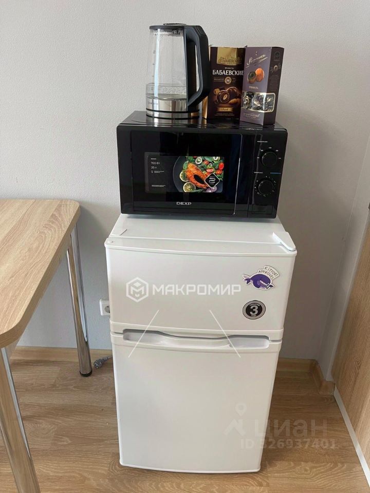 Студия с новой мебелью — вся мебель недавно приобретена. Если чего-то не хватит — можно докупить в зачёт арендной платы, всё обсуждается.