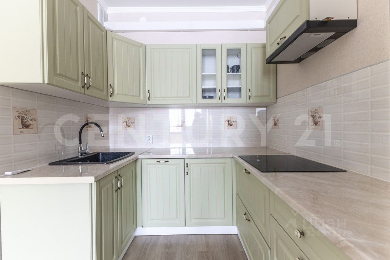 В квартире выполнен качественный ремонт. На кухне установлена вся необходимая бытовая техника: кухонный гарнитур, варочная панель, духовой шкаф, микроволновая печь с грилем, посудомоечная машина, холодильник, стиральная машина.