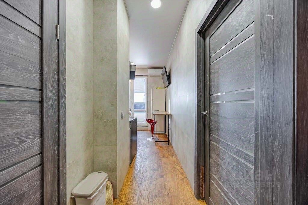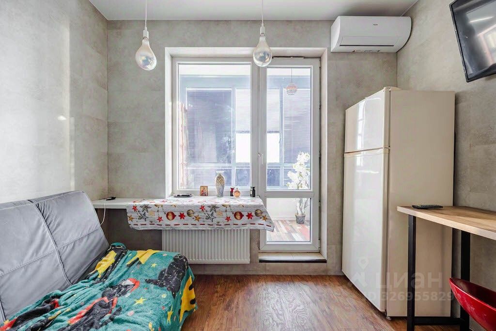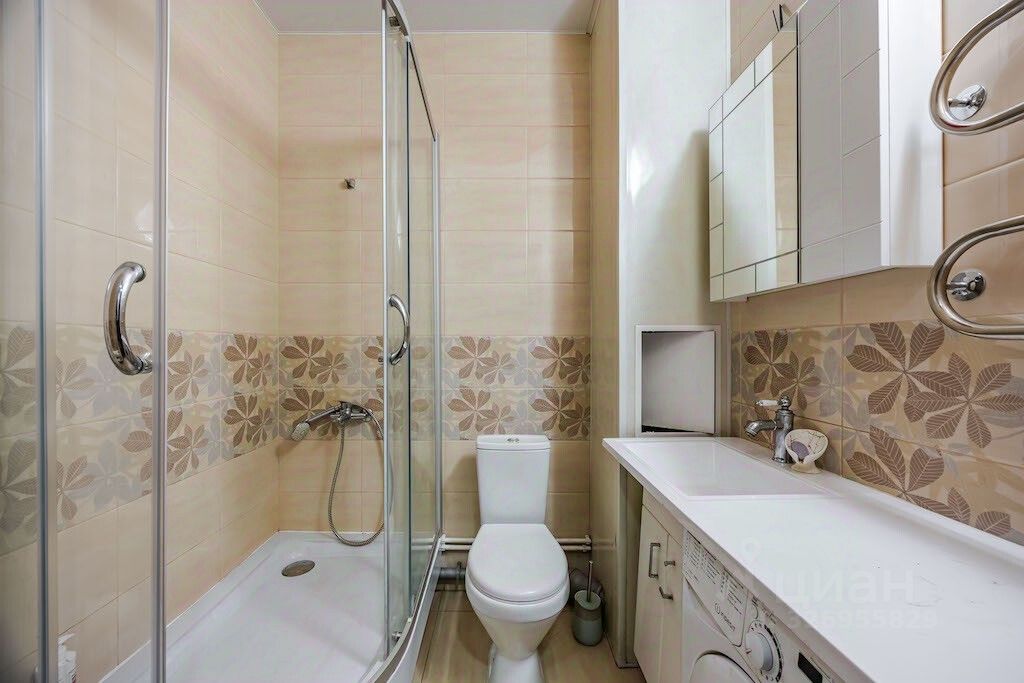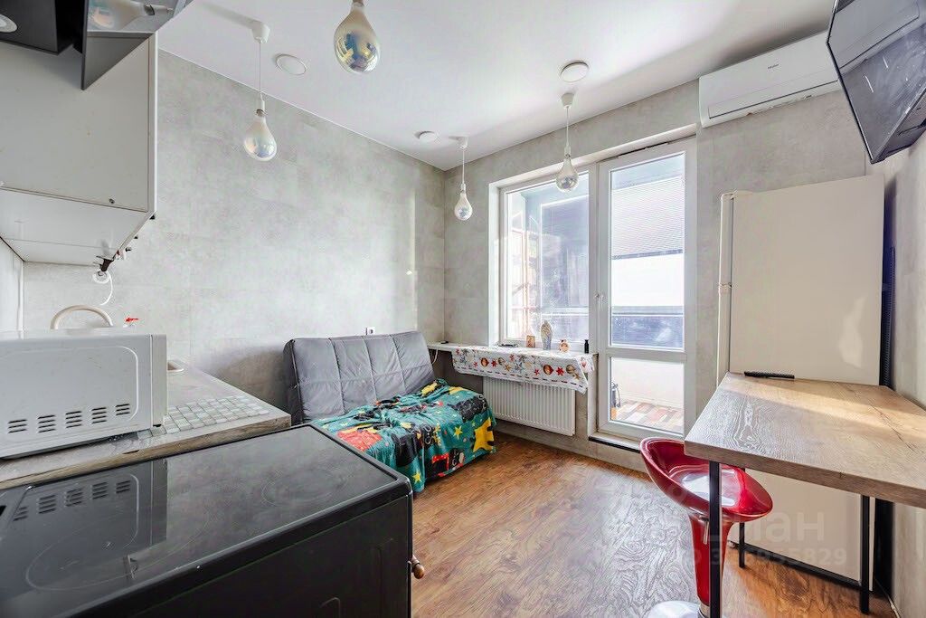 Квартира площадью 32 квадратных метра, удобной планировки: в комнате есть ниша для спального места, выход на просторную лоджию есть из комнаты и кухни, в коридоре так же имеется ниша, которую можно использовать для встроенного шкафа. На кухне разместился кухонный гарнитур со встроенное техникой, есть посудомоечная машина. Установлен кондиционер. В ванной комнате кафельная плитка. Квартира светлая и теплая, открывается вид на город, простор, нет эффекта окна в окна.