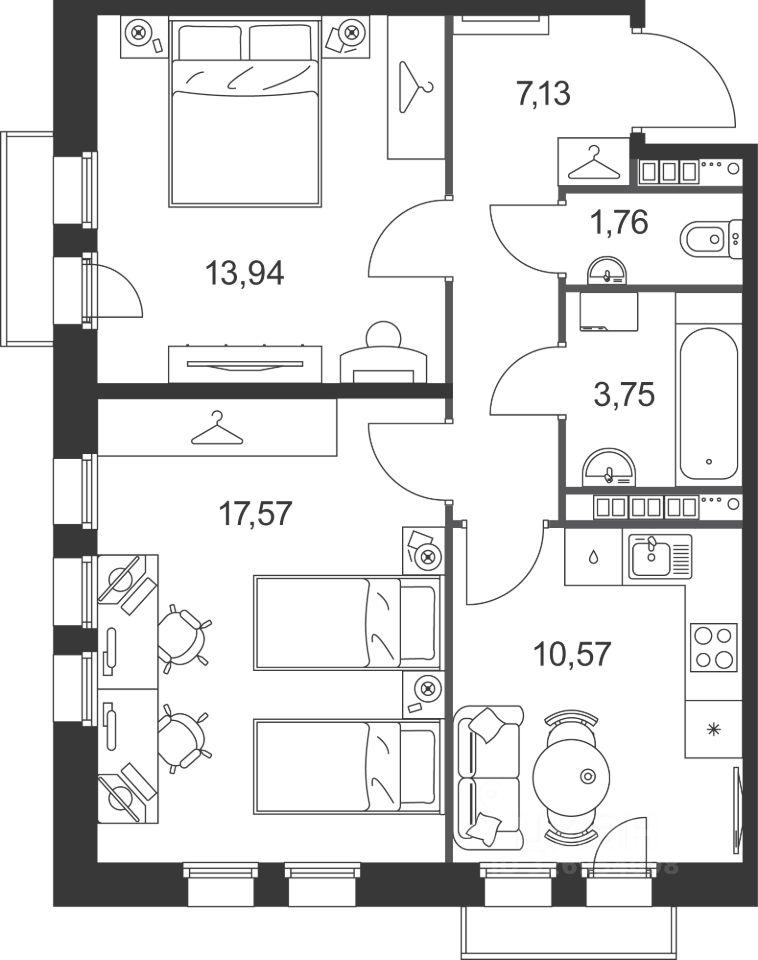 Продаётся 2-комнатная квартира в строящемся доме (Корпус 7), срок сдачи: IV-кв. 2027, общей площадью 55.37 кв.м., на 3 этаже. Жилой квартал ''Слобода'' - новый малоэтажный пригород Петербурга класса высокого комфорта. ''Слобода'' - проект в сочетании современной архитектуры и камерной атмосферы. Жилой квартал возводится в 3 этапа, дома не превышают четыре этажа, что дает ощущение простора и покоя. Сердце квартала - собственный приватный парк с живописным променадом, который протянется через весь квартал. В проекте предусмотрены квартиры на самый взыскательный вкус - от уютных студий, наполненных светом, до просторных евро трёхкомнатных квартир для больших семей. Каждая квартира будет передана с выполненной чистовой отделкой.