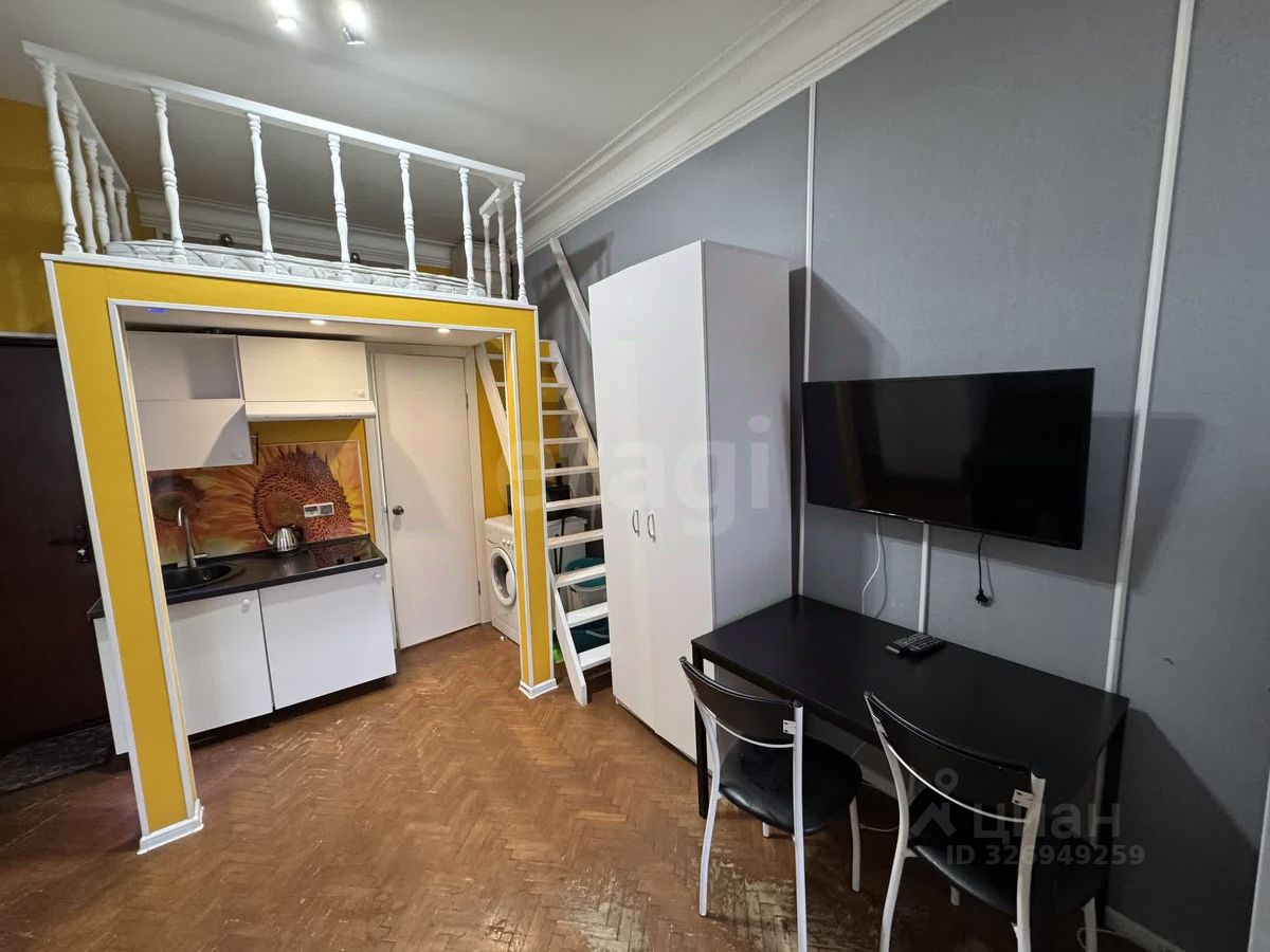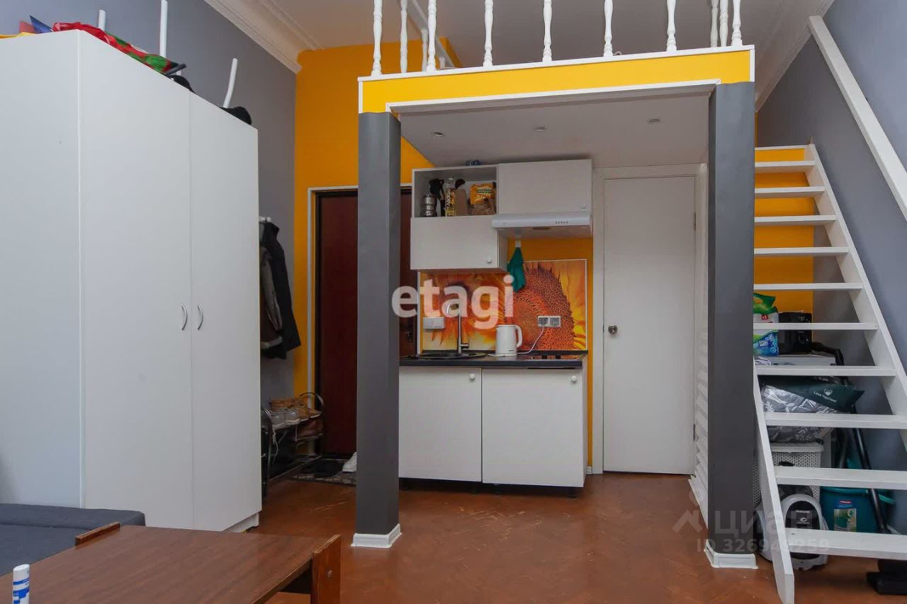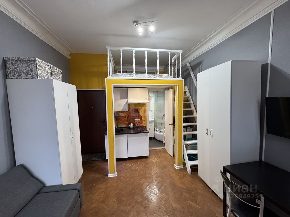 Двухуровневая студия площадью 20 кв. м с полноценным вторым ярусом 6 кв. м расположена в Центральном районе, в нескольких минутах ходьбы от станции метро ''Владимирская''.