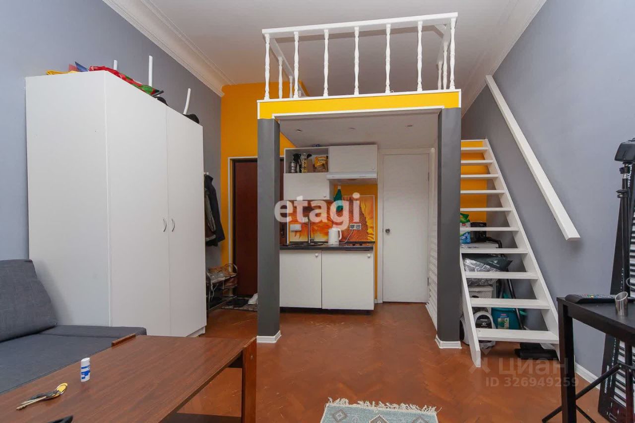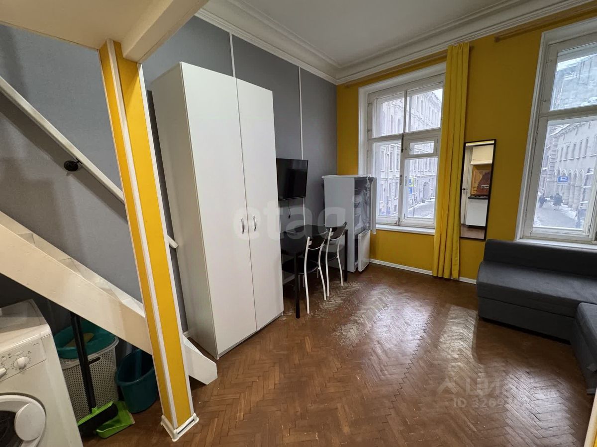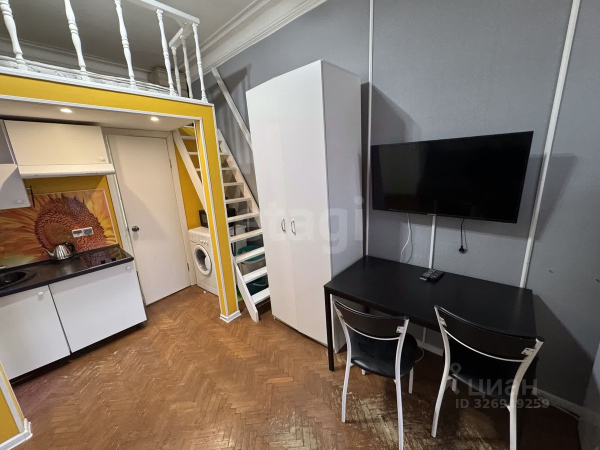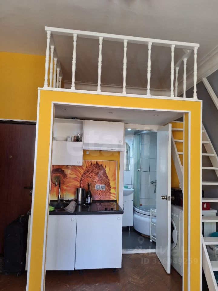 Двухуровневая студия площадью 20 кв. м с полноценным вторым ярусом 6 кв. м расположена в Центральном районе, в нескольких минутах ходьбы от станции метро ''Владимирская''.