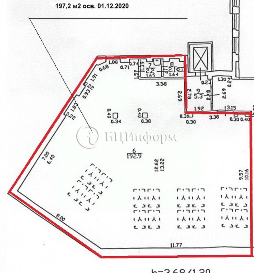 Сдается в аренду офисный блок 197.2 м2 на пятом этаже. Открытая планировка с перегородками и антресолью.