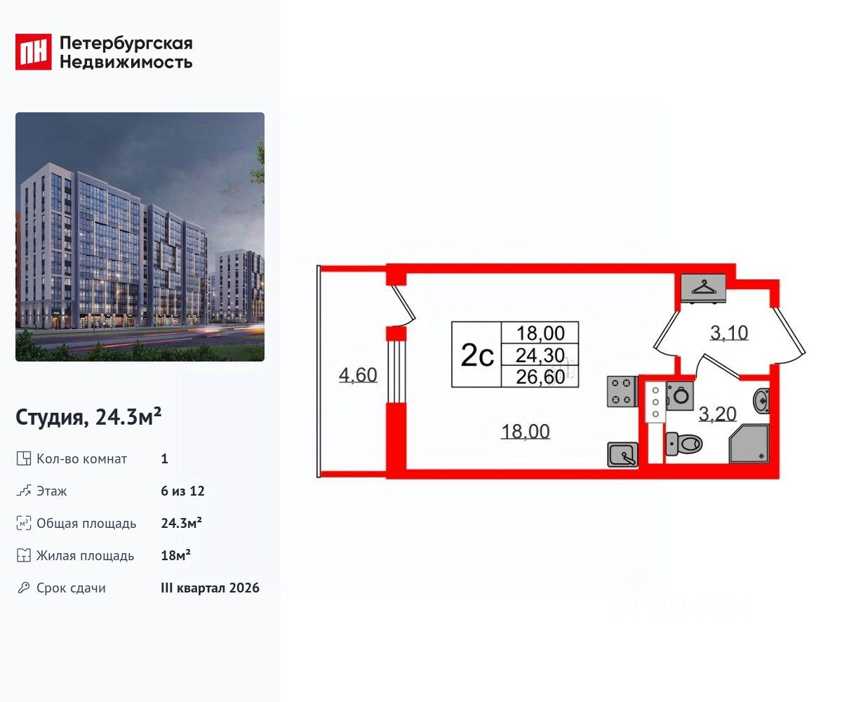 Продается просторная студия от застройщика в жилом комплексе ''Бионика Заповедная'' в динамичном Приморском районе.