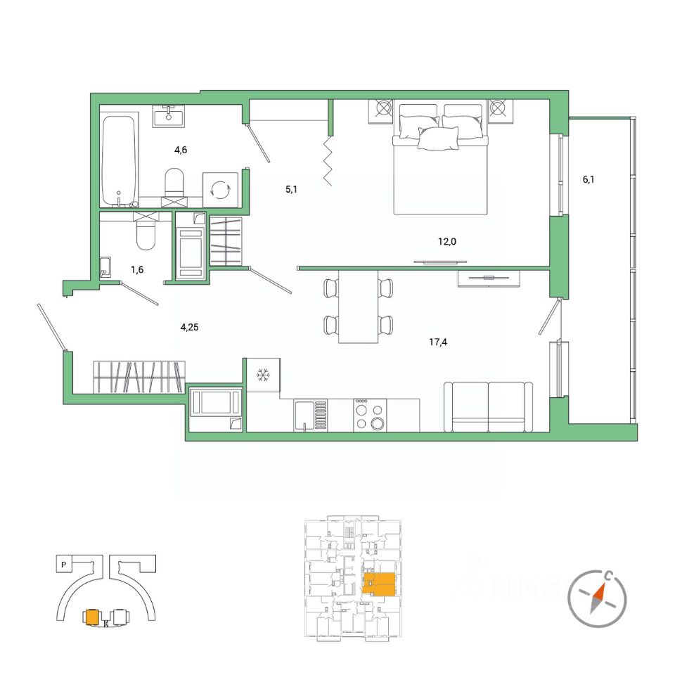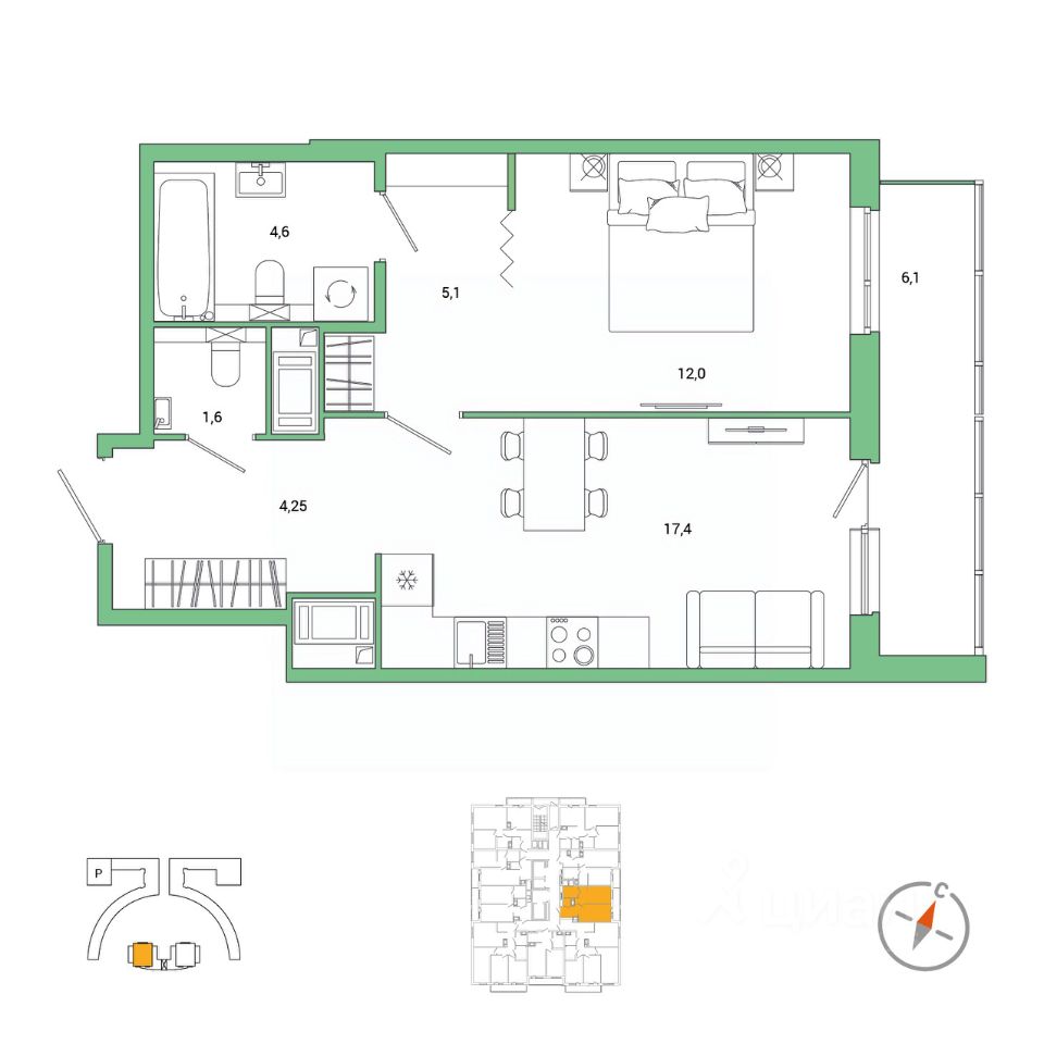 продам 1-к, Реки Каменки набережная, 1113 272 000 ₽