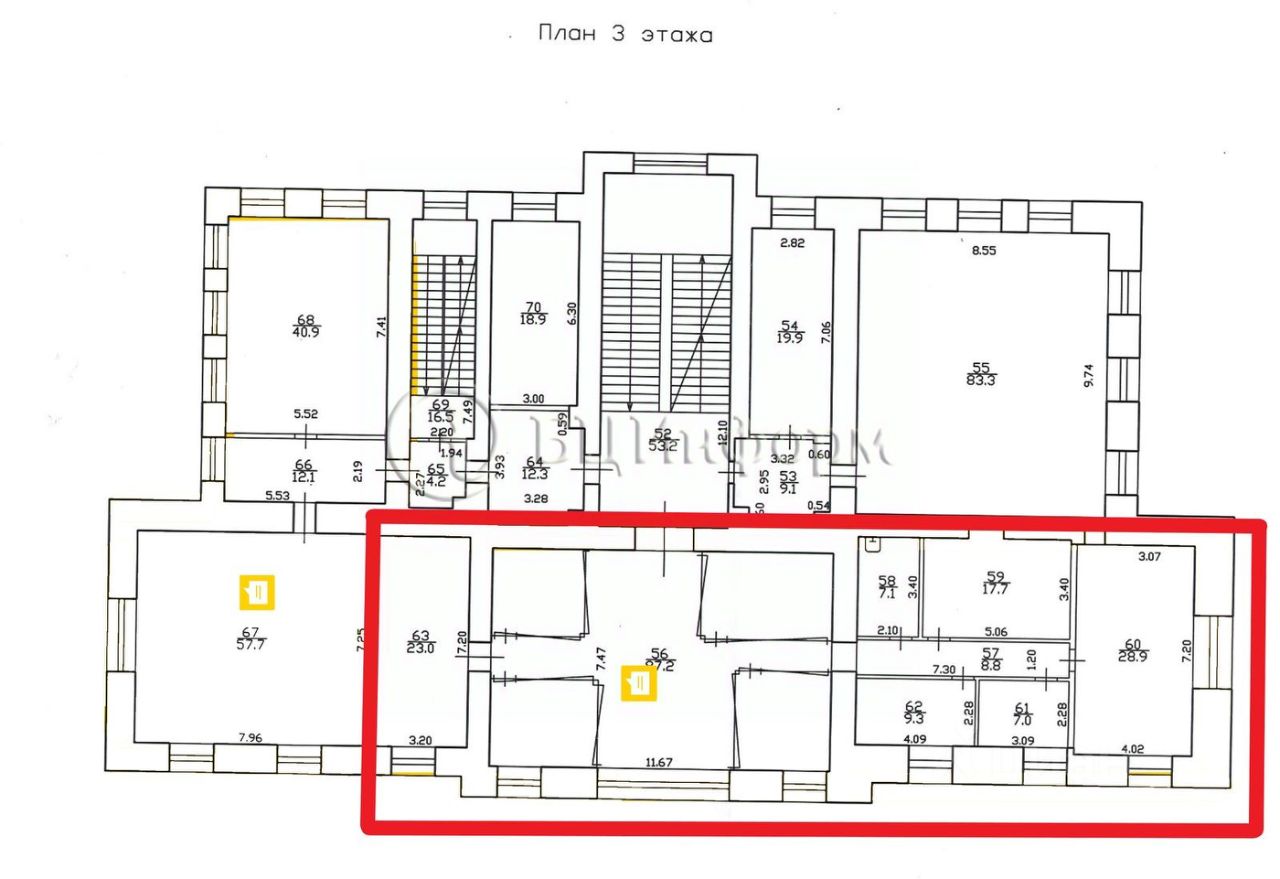 Кабинетная планировка -7 кабинетов, Большой кабинет разделен стеклянными перегородками (не в потолок). Кондиционирование в каждом помещении, вентиляция, система электронного доступа (скуд). Помещения с высокими потолками 4м, большие окна, очень светлые помещения. Отделка стандартная: потолки - армстронг, стены - обои под окраску, напольное покрытие - ламинат. Качественно разведенные коммуникации. Выделенное помещение под столовую с водой и канализацией.