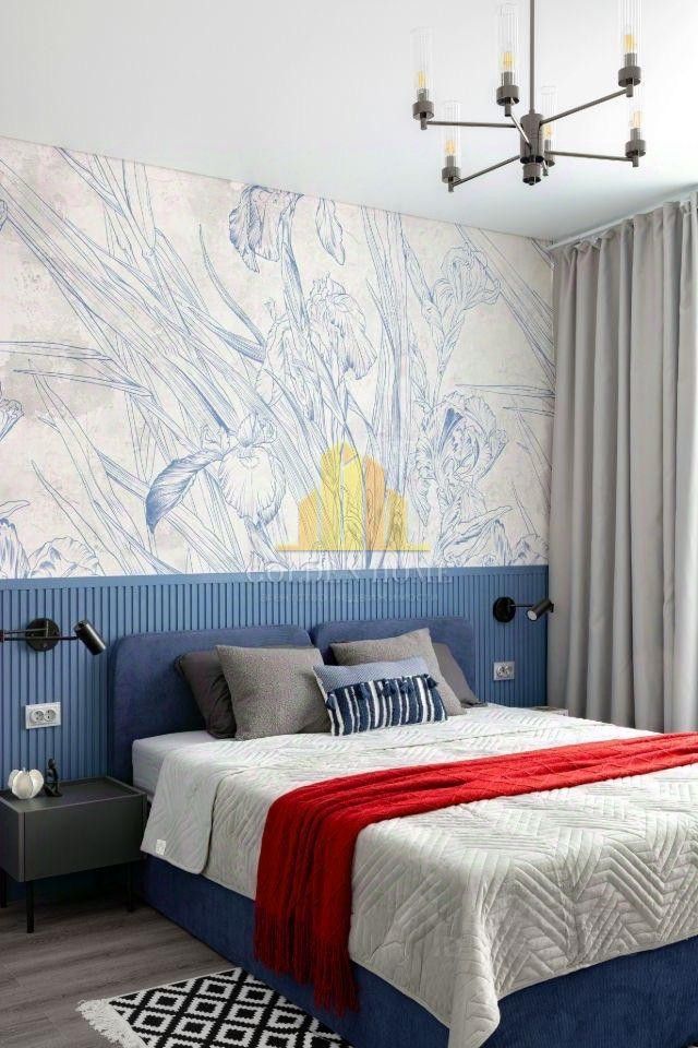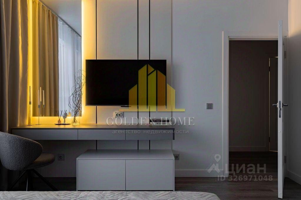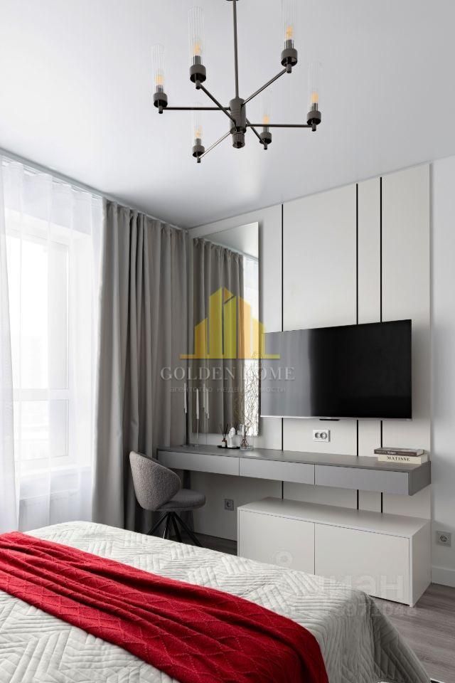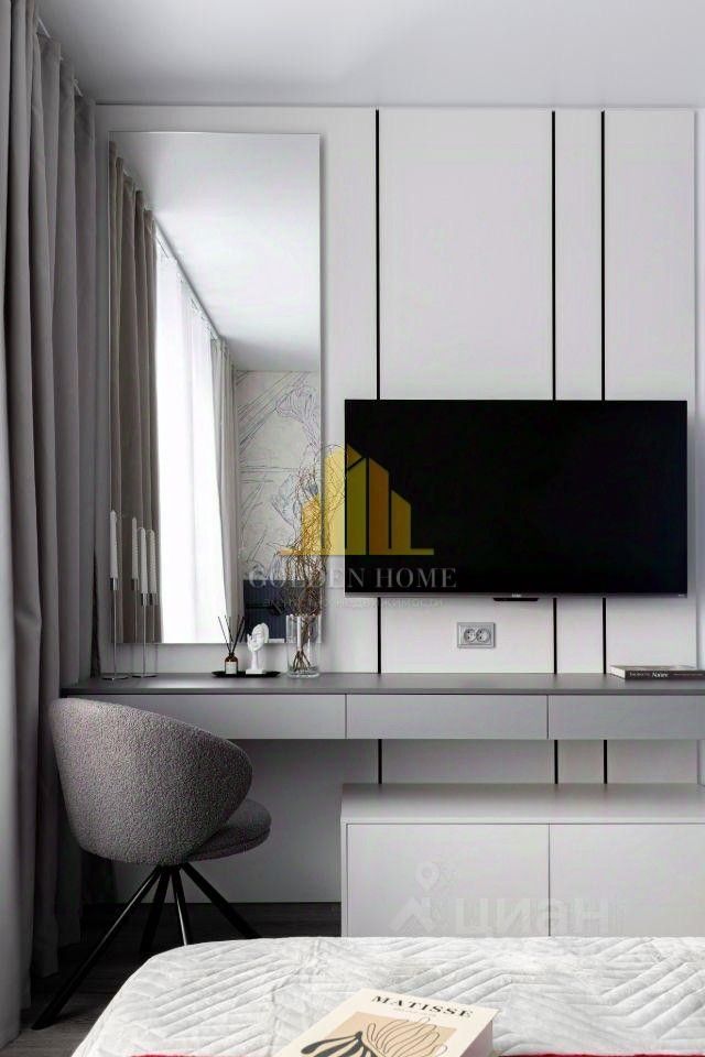 В комнате: двуспальная кровать 160200, большой шкаф, ТВ зона, система хранения, рабочий столик.