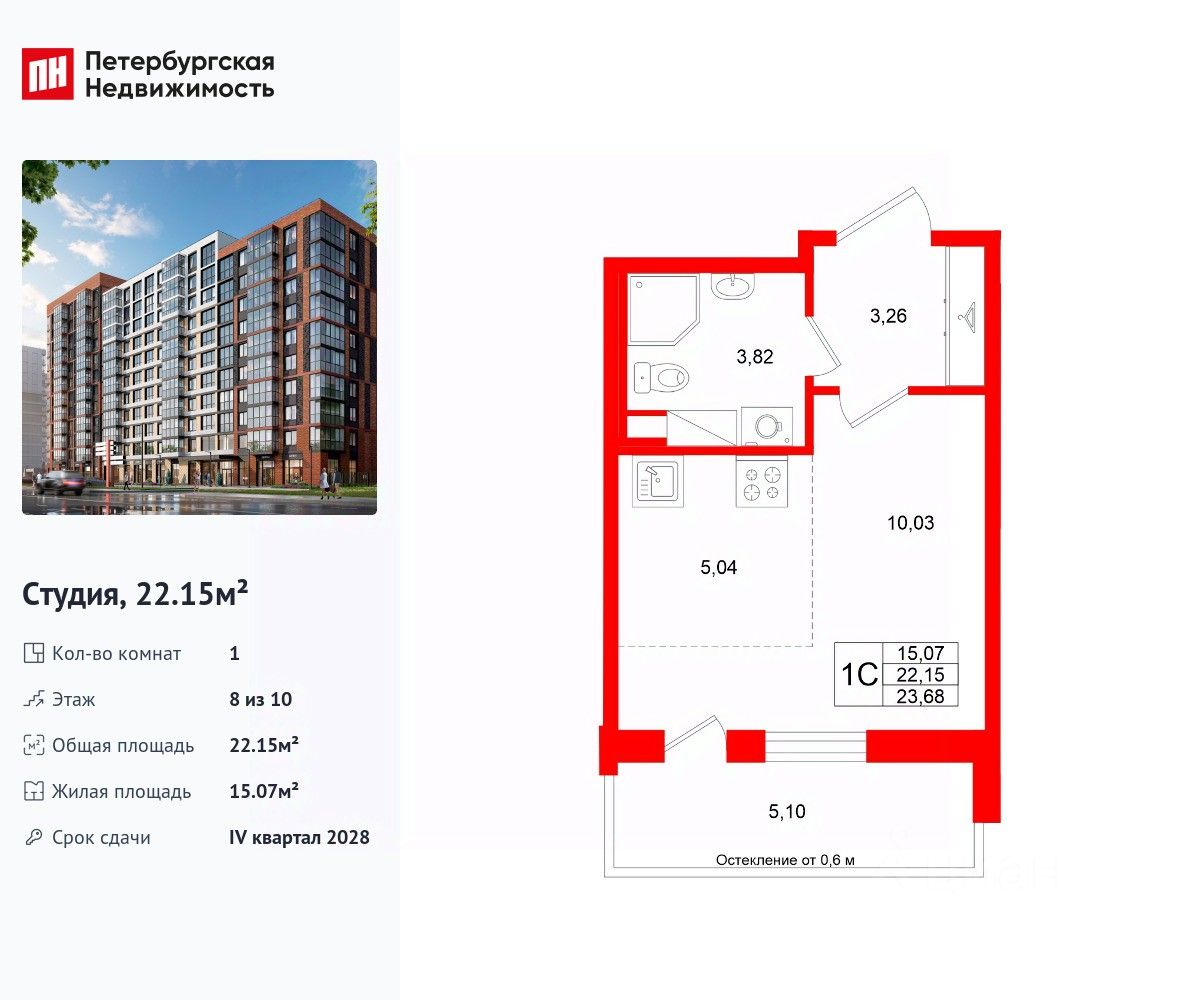Общая площадь22,15 м2