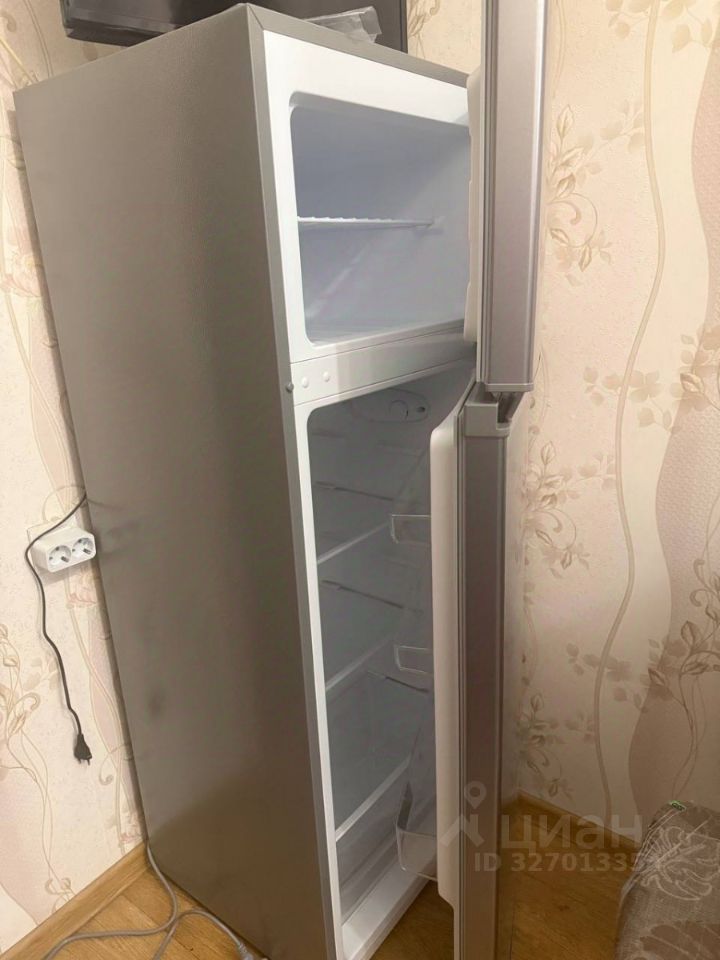 Вместительный шкаф, комод, стол ,стулья, телевизор, чайник, новый холодильник, посуда.
