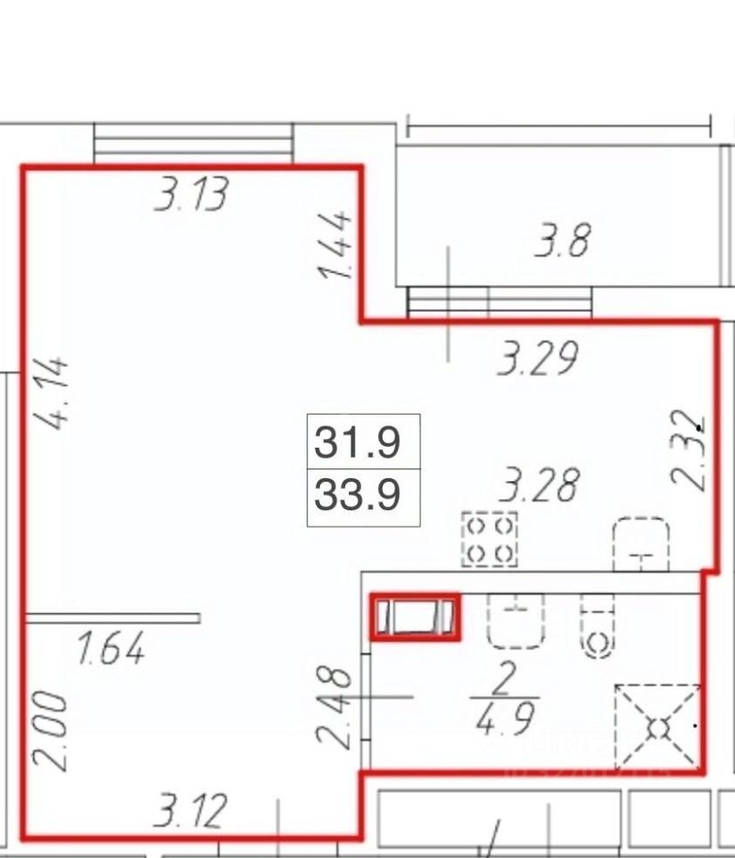 Предлагается к продаже квартира площадью 32 квадратных метра плюс балкон, с окнами на южную сторону и вид на красивый двор.