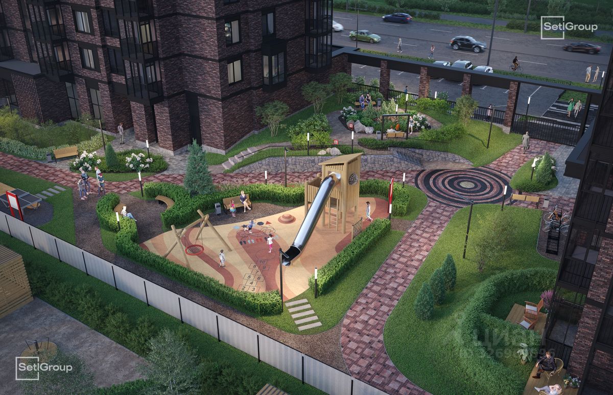 • Единая входная группа с авторским дизайном и лаундж-зоной