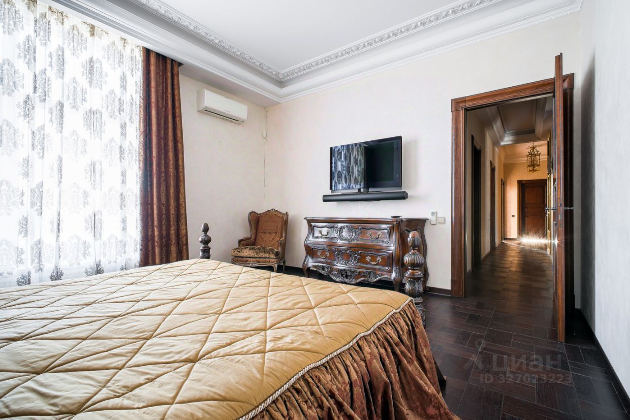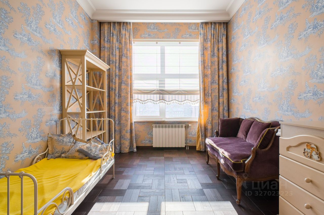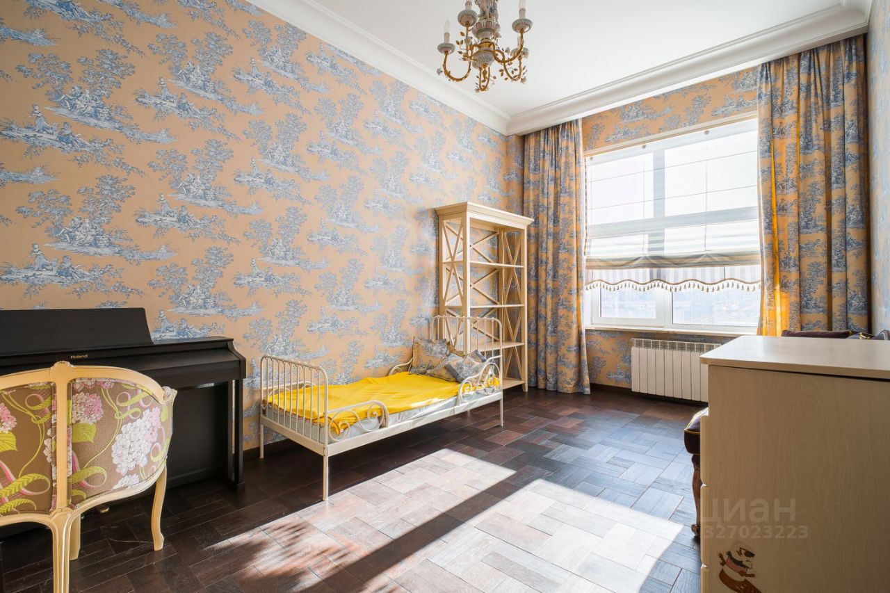 Просторная гостиная 60 м² с 2 большими окнами. В кабинете и спальнях стильная дорогая отделка, материалы высшего класса, делали для себя. Корпусная мебель из красного дерева от итальянской Provasi, мягкая мебель от голландской Eichholtz, кровати от итальянской Flexform с матрасами от Consul. Экологичная мебель в детской комнате от итальянской Erbesi. В комнате сделано грамотное зонирование: игровое и спальное места. В комнатах ТВ и акустика класса High End от датской Bang & Olufsen. Шторы блэкаут