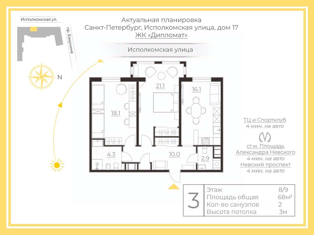 В квартире площадью 68 м2 все продуманно до мелочей! Функциональная планировка: кухня, 2 спальни, 2 санузла, просторная прихожая и места для хранения. Мебель и техника остается, можно заехать и сразу жить. Почти вся техника - это Miele, кондиционеры Daikin.