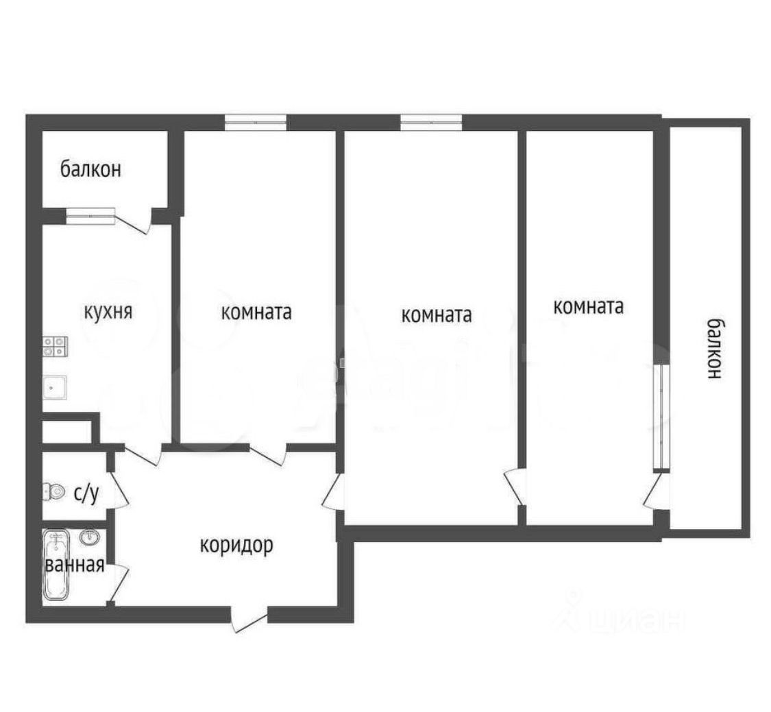 Продаётся 3-х комнатная квартира в кирпичном доме 1975 года постройки. Дом ЖСК.