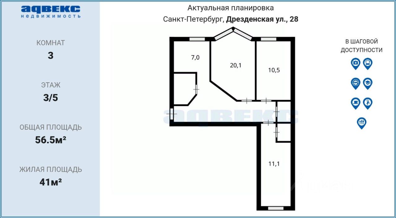 В квартире выполнен косметический ремонт: натяжные потолки, ровные стены, опрятный паркет.