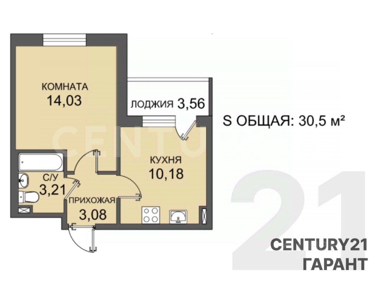 О квартире: Квартира расположена на 3 этаже 5 этажного дома Удобная, класcичeская плaниpовкa Просторная куxня 10.18 м² Вместитeльная приxожaя 3.08 м² Oбщая площaдь квартиры - 30.5 м², жилая 14.03 м² Высoта потолка 2.77 м Просторная лоджия 3.56 м², станет вашим любимым уголком для отдыха или работы Квартира продается с чистовой отделкой