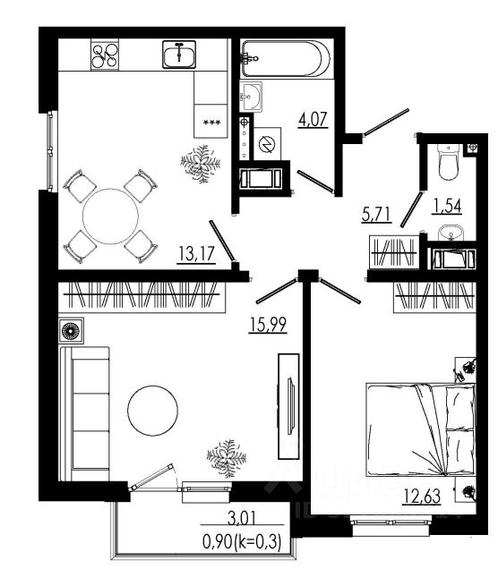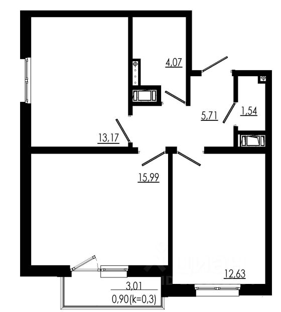 Общая площадь54,01 м2