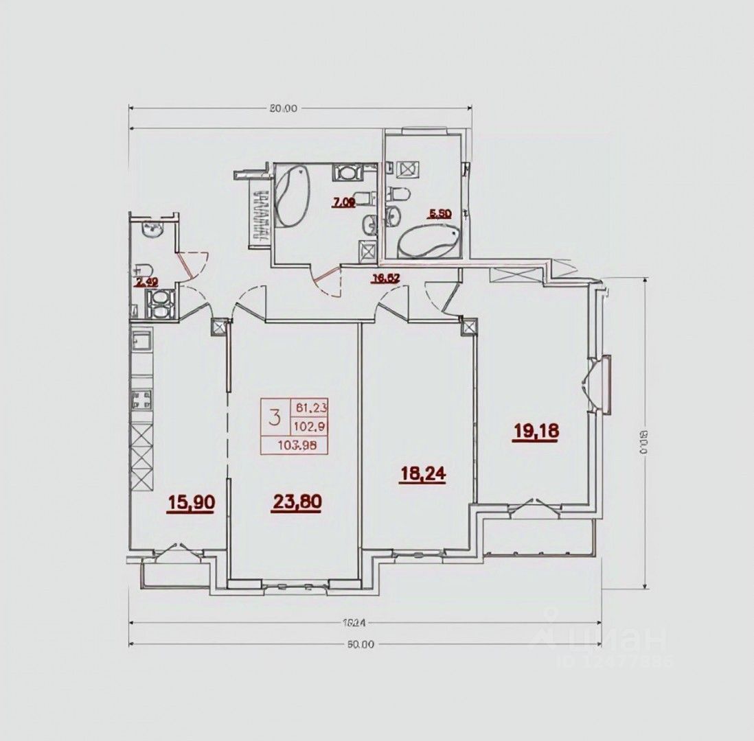 Квартира с черновой отделкой, вы можете скорректировать планировку под свои потребности.