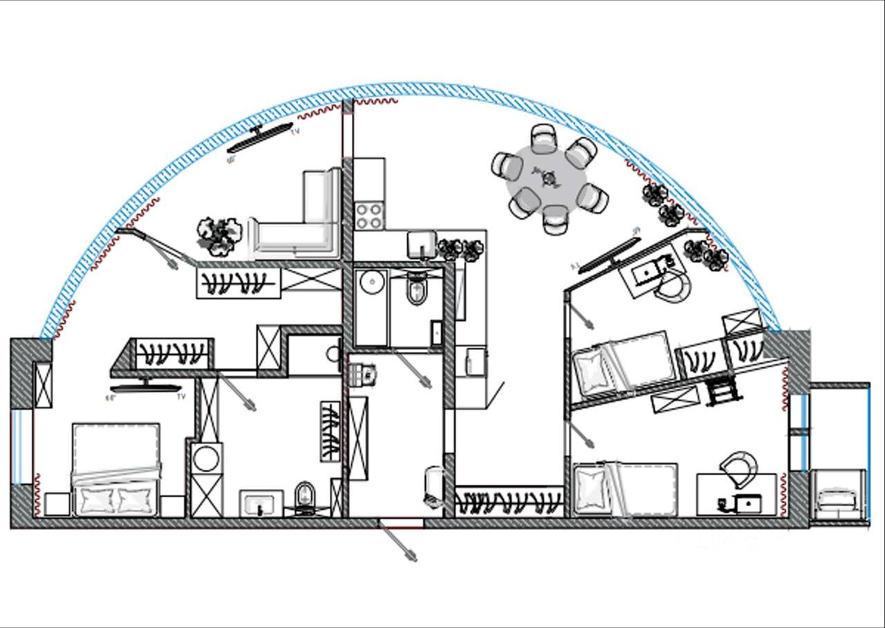 4-к квартира площадью 95 м2 имеет: - ДВЕ обособленные детские спальни - МАСТЕР спальню для родителей с гардеробной и душевой комнатой - ЛАУНЖ для отдыха и игры в приставку - ВМЕСТИТЕЛЬНУЮ современную кухню-гостиную - ПРИХОЖУЮ и ВТОРУЮ ванную комнату.