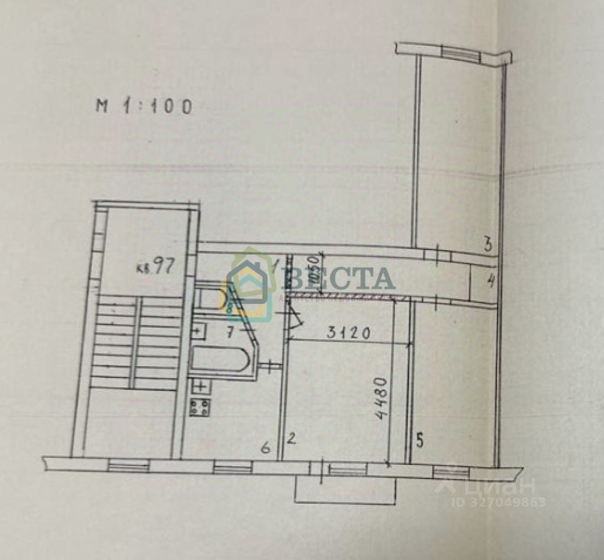 Прямая продажа. Трехкомнатная квартира с просторной кухней и балконом, площадью 57.8 квадратных метра, располагающаяся на 5 этаже
