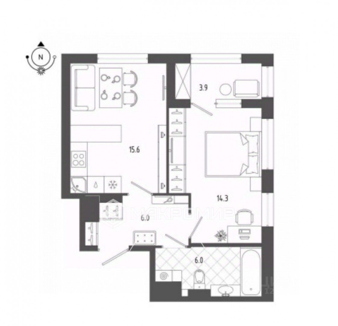 Арт. 131651977 Сдается большая (Евро) однокомнатная квартира с кухней-гостиной. Ранее не сдавалась и никто не жил, новая мебель, новый ремонт. Можно с животными и детьми. Кровать приедет в квартиру 23 февраля (на фото только матрас).