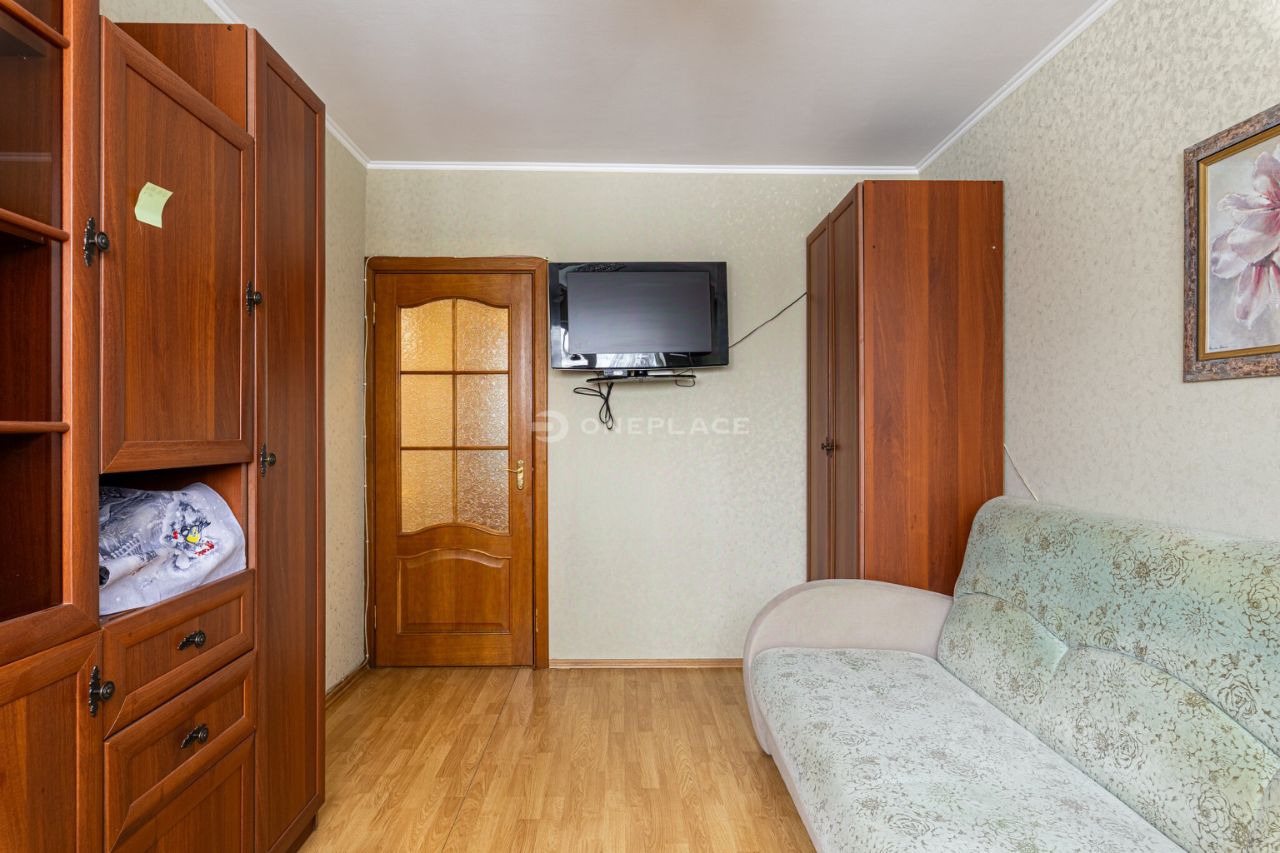К моменту продажи квартира будет освобождена от мебели и личных вещей. Будущим собственникам останется встроенная кухня с техникой (варочная панель, духовой шкаф, вытяжка), вместительный шкаф-купе в прихожей.