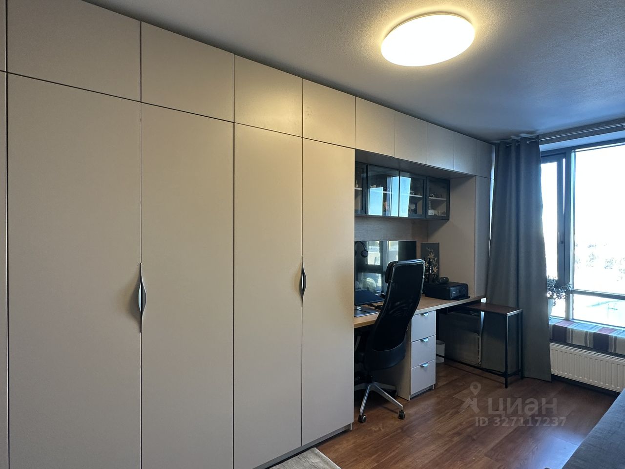 Общая площадь квартиры 34,2 кв.м. + остеклённая лоджия Комната 17,5 кв.м. + кухня 10 кв.м. Всё продумано до мелочей: - вместительная гардеробная - переходящая в встроенный шкаф - и в большой стол на два рабочих пространства - большое окно с широким подоконником - встроенная кухонная мебель, большая рабочая поверхность - раскладной диван на кухне - панорамные окна из кухни на лоджию - встроенный шкаф на лоджии - совмещённый санузел стиральная машина в ванной - проточный нагреватель на время летнего отключения