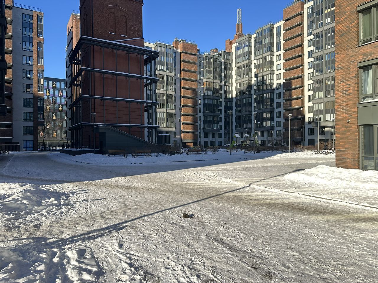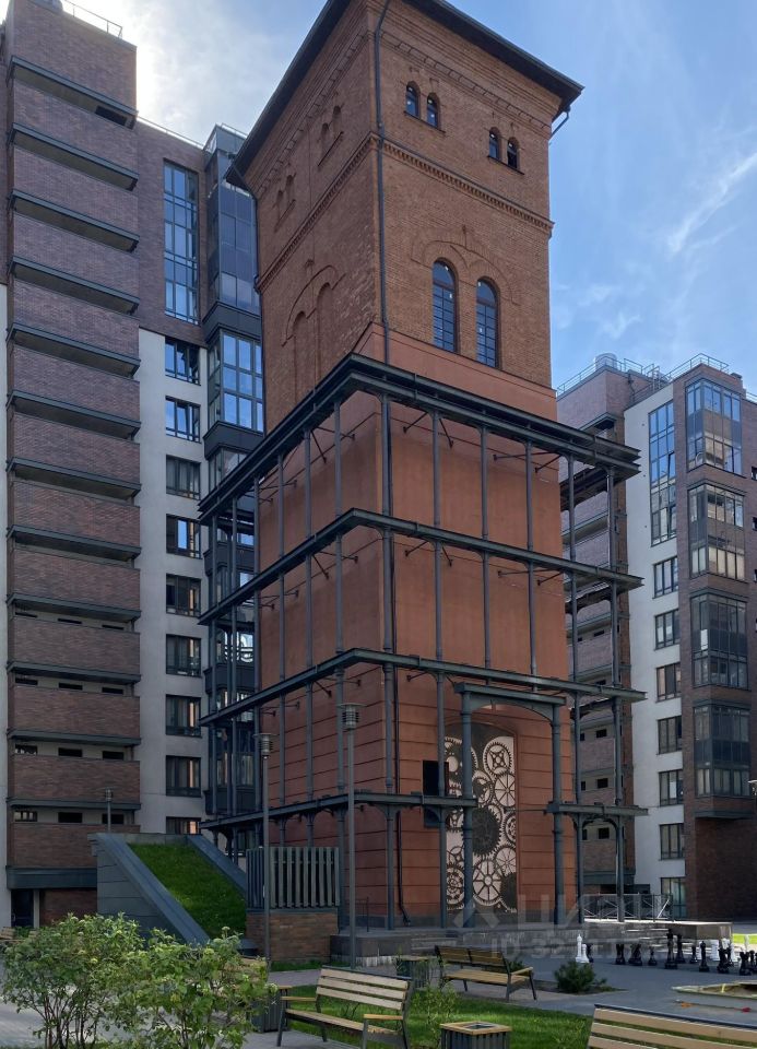 Уникальный жилой комплекс Дом на излучине Невы: + проект, вдохновленный кирпичными мануфактурами 19 века, выполнен в современном стиле с использованием элементов промышленной архитектуры, гармонично вписан в архитектурный облик города + особенность проекта - навесной вентилируемый фасад их клинкерного кирпича, который даёт дому монументальный облик, а внутри делает дом очень теплым и дышашим, + закрытый благоустроенный двор с историческим памятником архитектуры водонапорной башней, которую застройщик полностью отреставрировал + детские площадки для разных возрастных групп + ландшафтный дизайн и озеленение многолетними растениями + скамейки и зоны для отдыха + лифты SCHINDLER спускаются прямо в п