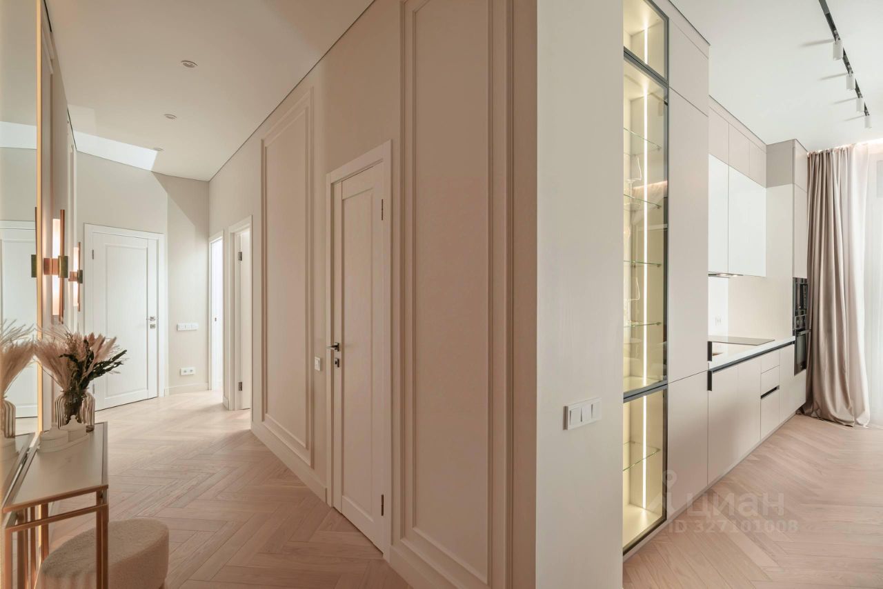 Элегантная квартира с дизайнерским ремонтом в клубном доме. Изысканное пространство для жизни в самом сердце Петроградского района. Квартира с новым дизайнерским ремонтом, где эстетика сочетается с продуманной эргономикой, а каждая деталь работает на комфорт и удовольствие от жизни. Планировка включает просторную кухню-гостиную с панорамными окнами, обращёнными в тихий, приватный двор, две спальни, две функциональные гардеробные, ванную комнату и гостевой санузел. Гостиная органично зонирована на обеденную зону и уютное пространство для отдыха — идеальное место для встреч с близкими и неспешных вечеров.