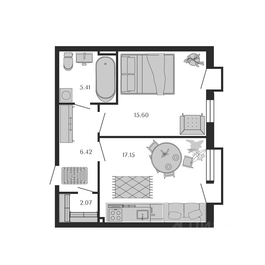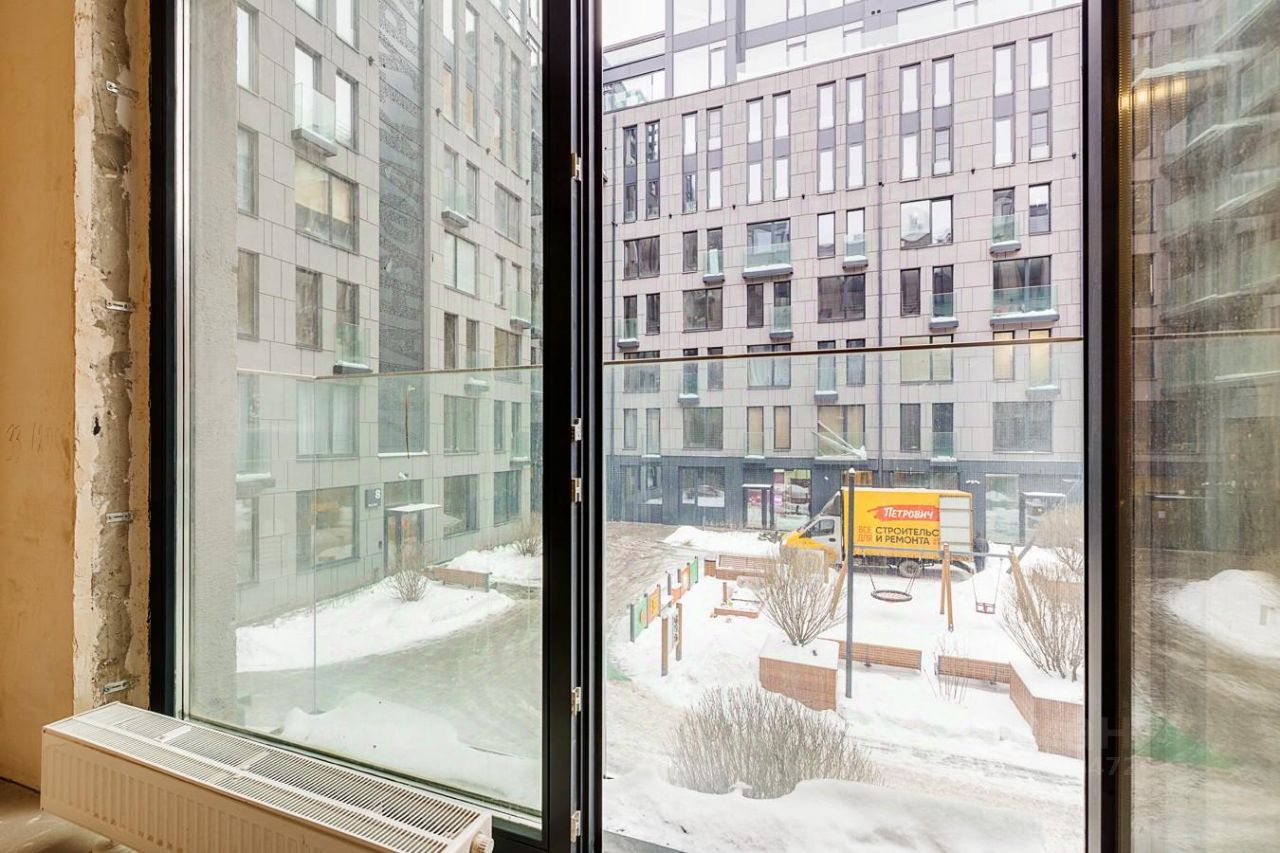 Приятный вид во двор. Правильная планировка c большой кухней, большим санузлом, гардеробной, высокими потолками и большими окнами. Много света и воздуха.