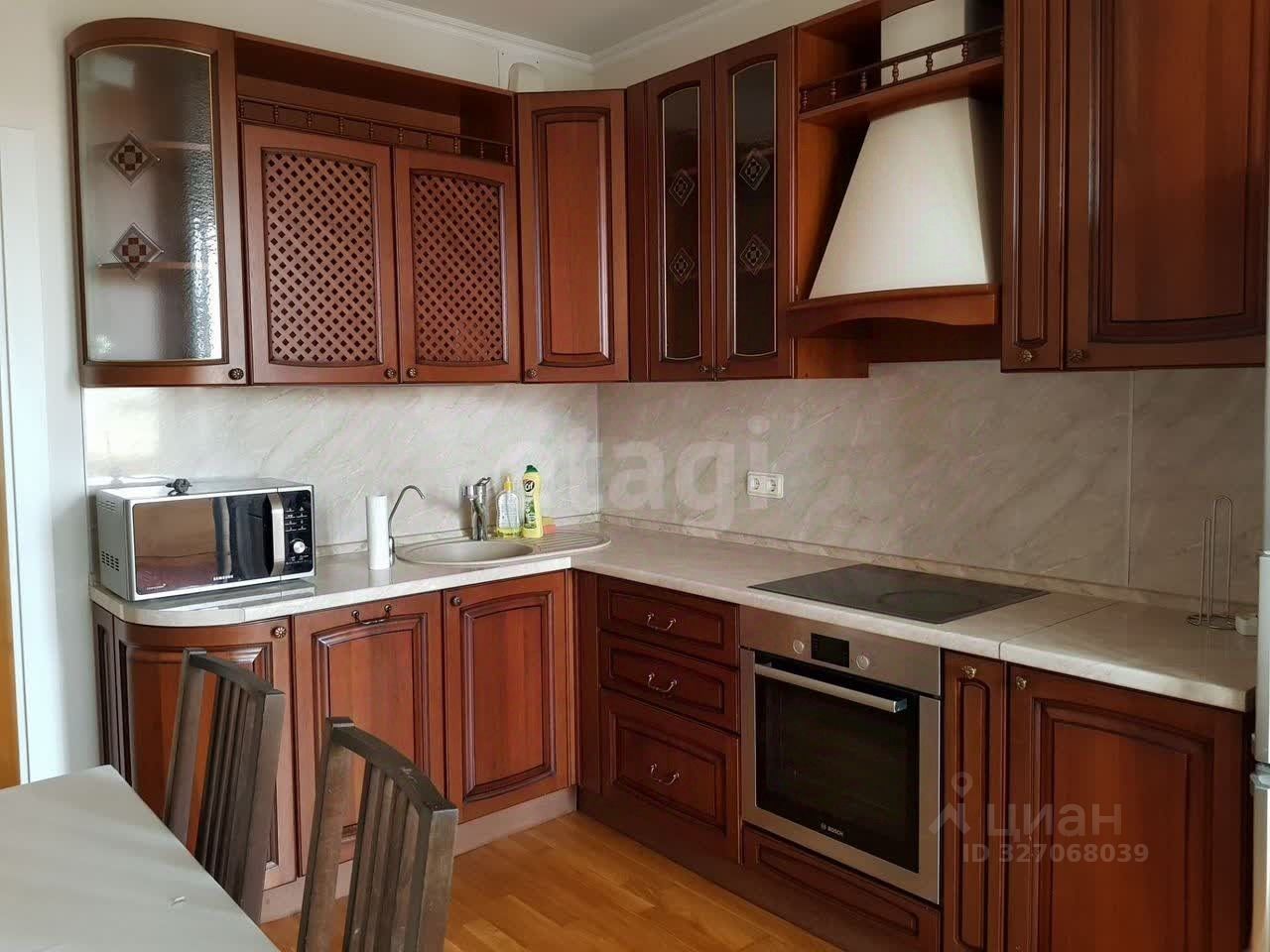 Кухня полностью оборудована современной бытовой техникой: холодильником, плитой, духовым шкафом, посудомоечной машиной и микроволновой печью.