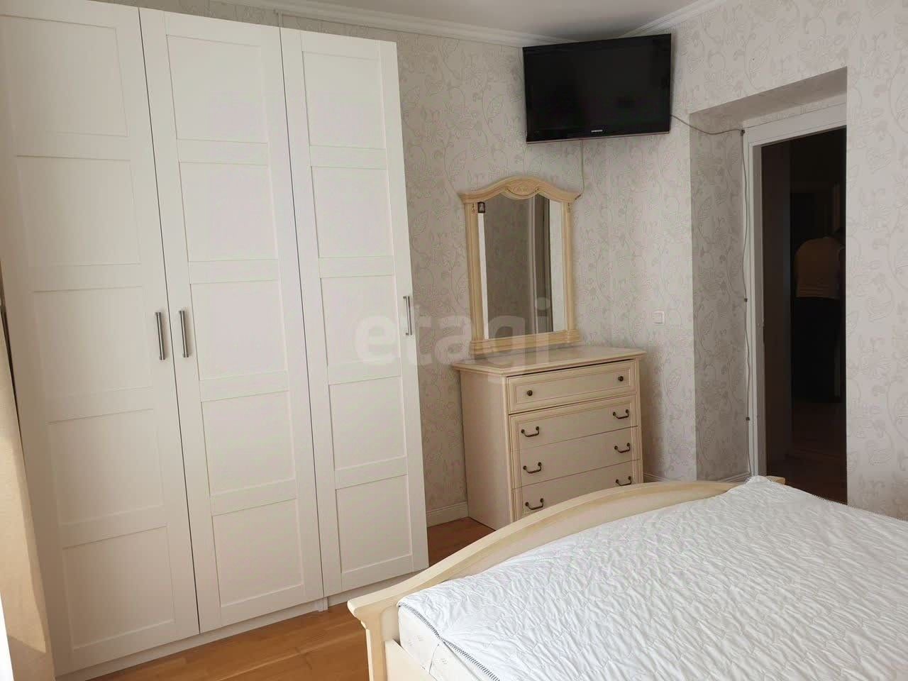 Спальня оснащена большой двуспальной кроватью и вместительным шкафом-купе, где легко разместятся все ваши вещи. Санузел раздельный, что добавляет удобства в повседневной жизни. В прихожей предусмотрены шкафы для верхней одежды.