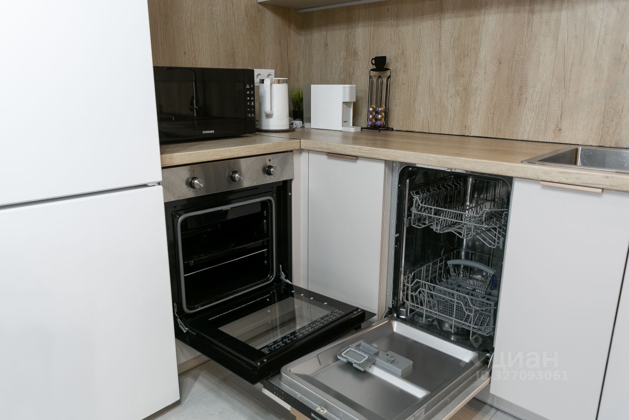 Квартира в отличном состоянии. На кухне и в комнатах есть вся необходимая мебель. Установлена современная техника: холодильник, телевизор, стиральная и посудомоечная машины, кондиционер, плита с духовым шкафом, микроволновая печь, чайник и кофемашина. Окна выходят как на улицу, так и во двор, в квартире всегда светло, уютно и тихо. Два санузла: совмещённый с ванной и отдельный гостевой туалет с раковиной.