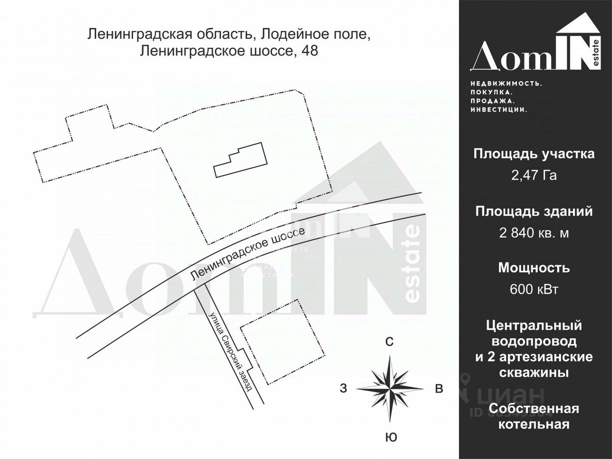 Арт. 129994947 В продаже ЗЕМЕЛЬНЫЙ УЧАСТОК 2.47 Га с комплексом зданий ПРОИЗВОДСТВЕННОГО назначения и готовыми инженерными мощностями в г.ЛОДЕЙНОЕ ПОЛЕ Ленинградской области. (Лодейнопольский городской молочный завод)