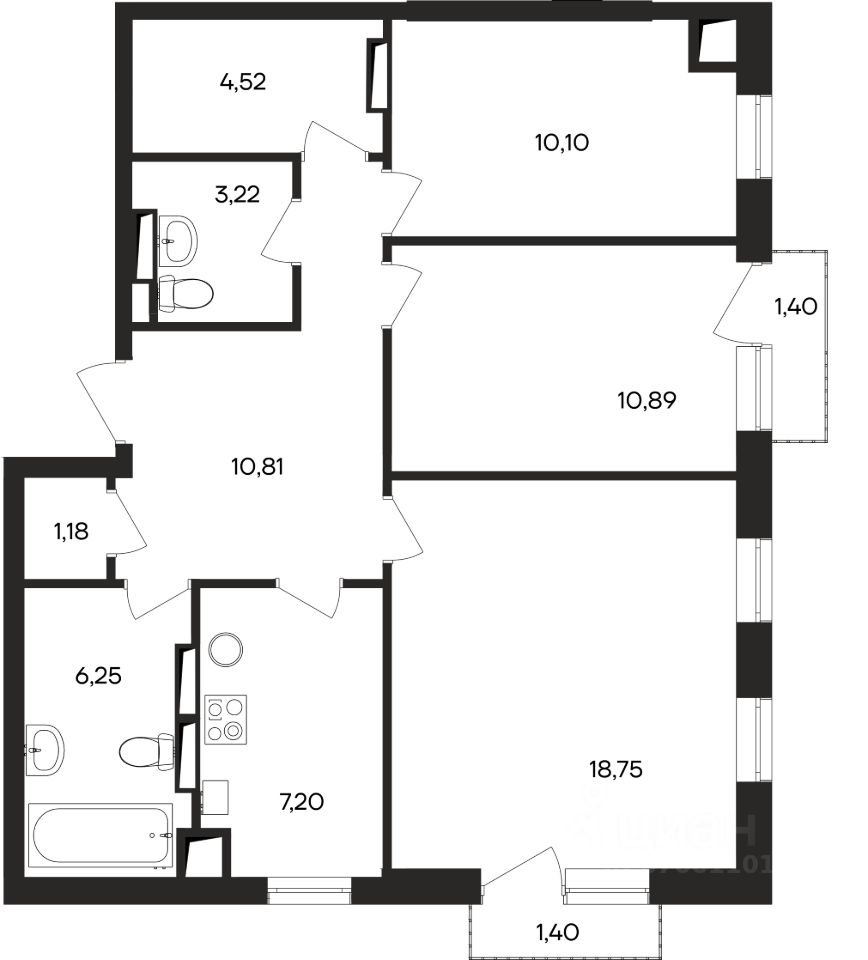 Продаётся 3-комнатная квартира в сданном доме (Корпус 4), срок сдачи: III-кв. 2025, общей площадью 75.72 кв.м., на 4 этаже. Новый жилой комплекс ''Кубики'' от застройщика ''ИнтерСтрой'' расположен по адресу: Россия, Республика Крым, городской округ Евпатория, посёлок городского типа Заозёрное, Олимпийская улица, 2