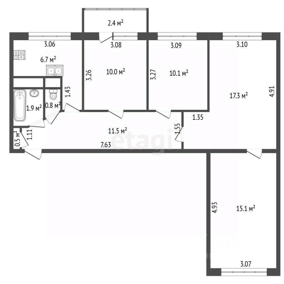Ставка по ипотеке 12,99% для всех! Продаётся 4-комнатная квартира 73,9 м² в отличной локации
