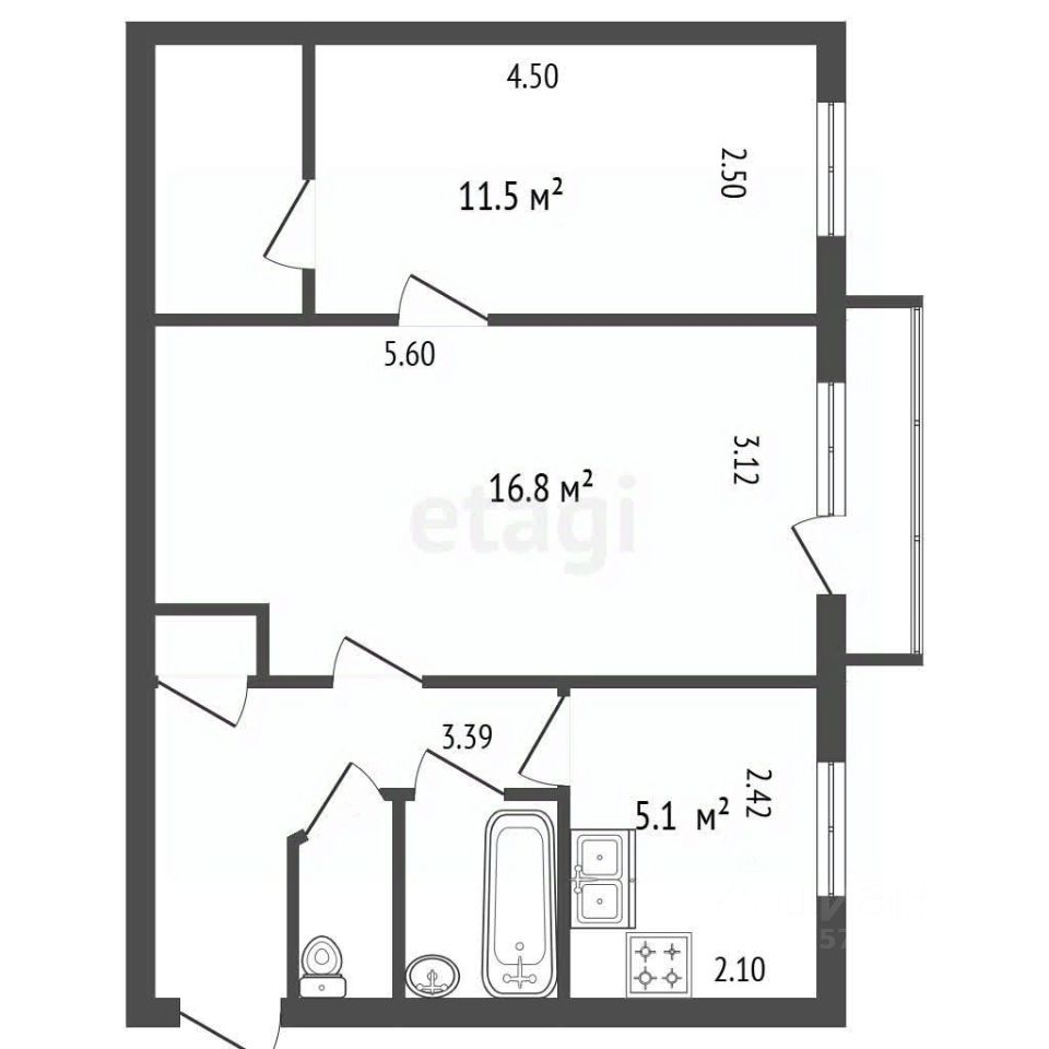 Планировка и помещения: Жилая площадь раздельная: просторная комната 16,8 кв.м. и уютная спальня 11,5 кв.м. Кухня 5 кв.м. — компактное, но функциональное пространство для завтраков и ужинов. Просторный балкон — отличное место для хранения или зоны отдыха.
