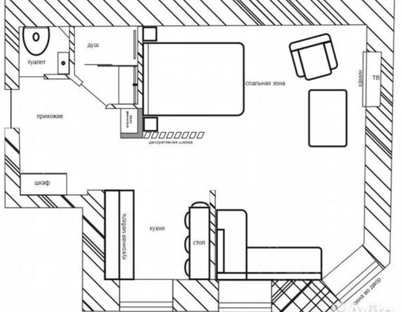 Продается атмосферная аутентичная квартира в историческом районе города, всего в 5 минутах пешком от станции метро ''Площадь Восстания''. Общая площадь квартиры составляет 37,1 кв. м, по документам однокомнатная, переделана в просторную студию. Расположена она на высоком первом этаже шестиэтажного кирпичного дома. Высокие арочные потолки, окна выходят во двор, что обеспечивает тишину и спокойствие.