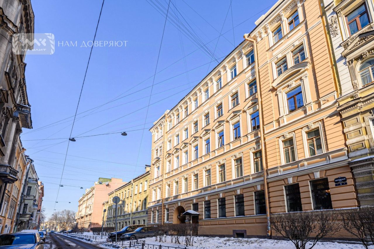 Год постройки: 1899 (кирпич). Перекрытия: Железобетонные плиты по металлическим балкам (надежность и хорошая звукоизоляция). Состояние: Отреставрирован фасад, сделан косметический ремонт парадной, установлен новый домофон. Управление: УК ''ЖКС Адмиралтейского района''. Двор: Дом расположен в глубине квартала, вдали от шумных проспектов. Перед домом — зеленая зона (газон, кустарники). Это редкая возможность жить в тишине, будучи в шаге от центра. Парковка: Есть возможность парковаться на улице и во дворе (в центре это большое преимущество). --- Район: Всё лучшее — в пешей доступности